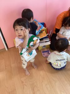 一対一でゆったり関わって読み聞かせを行う