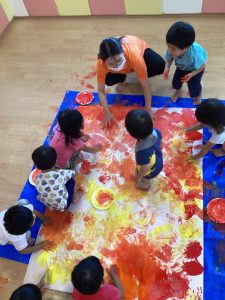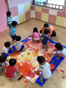 手足に絵の具をつけてダイナミックに✨