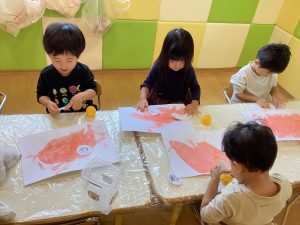 野菜のヘタでスタンピングを楽しみました😊