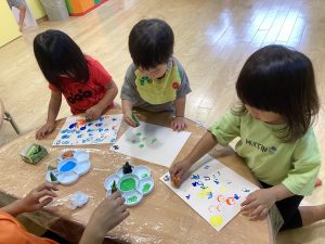 制作の様子と野菜スタンプ🥦を