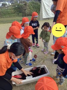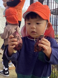 様々な形のさつまいもに興味津々です😊