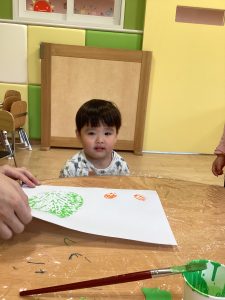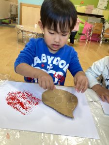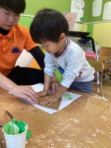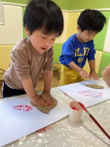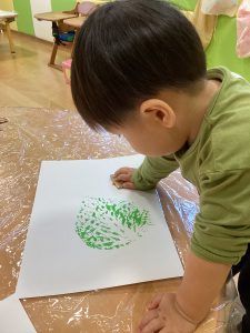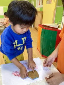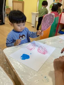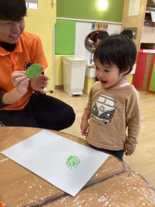 今週は落ち葉スタンプを楽しむ子ども達の様子をお伝えします🍂