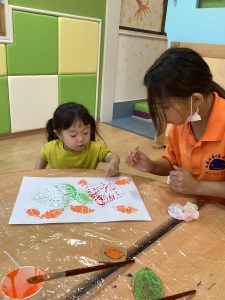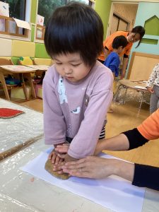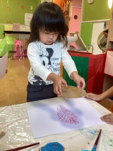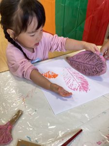 ご家庭でも落ち葉拾いやスタンピング遊びに