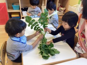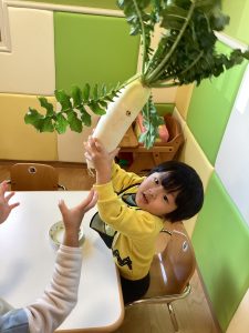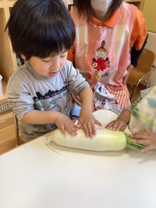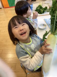 大根に興味津々の子どもたちでした🥰