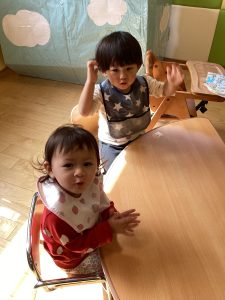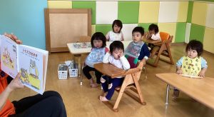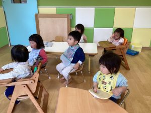 給食前にも絵本の読み聞かせを楽しんでいます😌