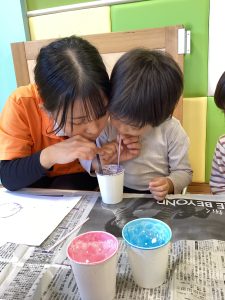 先生と一緒にストローで