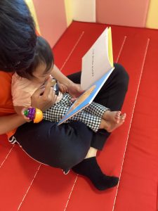 先生のお膝に座ってほっこり絵本タイム📕