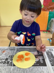 でんぷんのりを使ってペタペタ❗️