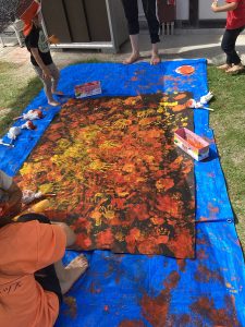 続いて手型やタンポで大型アートにも挑戦🎨
