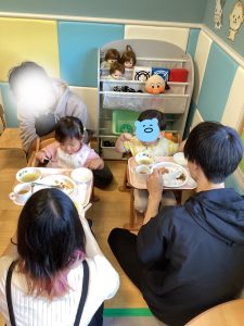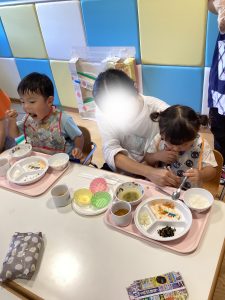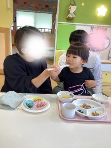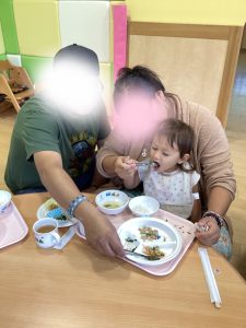 お散歩の後は給食試食会😋