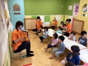 「ハロウィンってなーに?」の絵本を見たり、