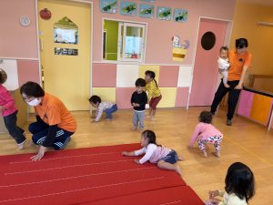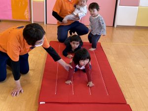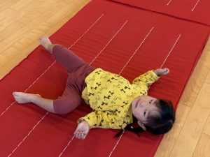 マットの上をコロコロ転がって、いも虫さん🐛になったりしています😀