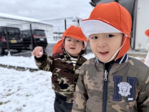 北国や北陸地方ほどではありませんが、滋賀県の甲南でもちょっとした積雪があり、見慣れた園庭が白色になっていて、子どもたちは大興奮🤗