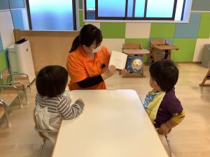 サンライズキッズ保育園では、日々子どもたちが絵本に親しみ、豊かな子どもに育つように、1日10冊以上の読み聞かせを行ってます
