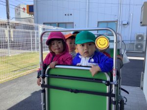 あちこちキョロキョロしながら車が見えると「あっ!」と指をさし、いつもと違う景色に喜んでいました