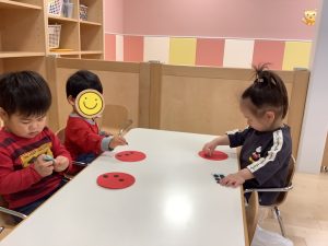 自分で台紙からはがしたシールを、ピタッと貼れたことが嬉しくて〝もっと もっと〜〟と楽しんで取り組んでくれました貼っているうちに、どんどん思いが出てきて、〝ここぢゃなくて、こっちに貼りたい〟と、自分が貼りたい位置に貼りかえる姿もありました