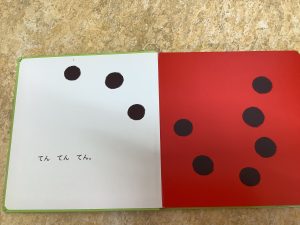 「てん てん てん」の絵本を興味深くみる子どもたち。