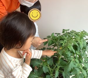 トマトが実るのを楽しみにしている子どもたちです(o^^o)