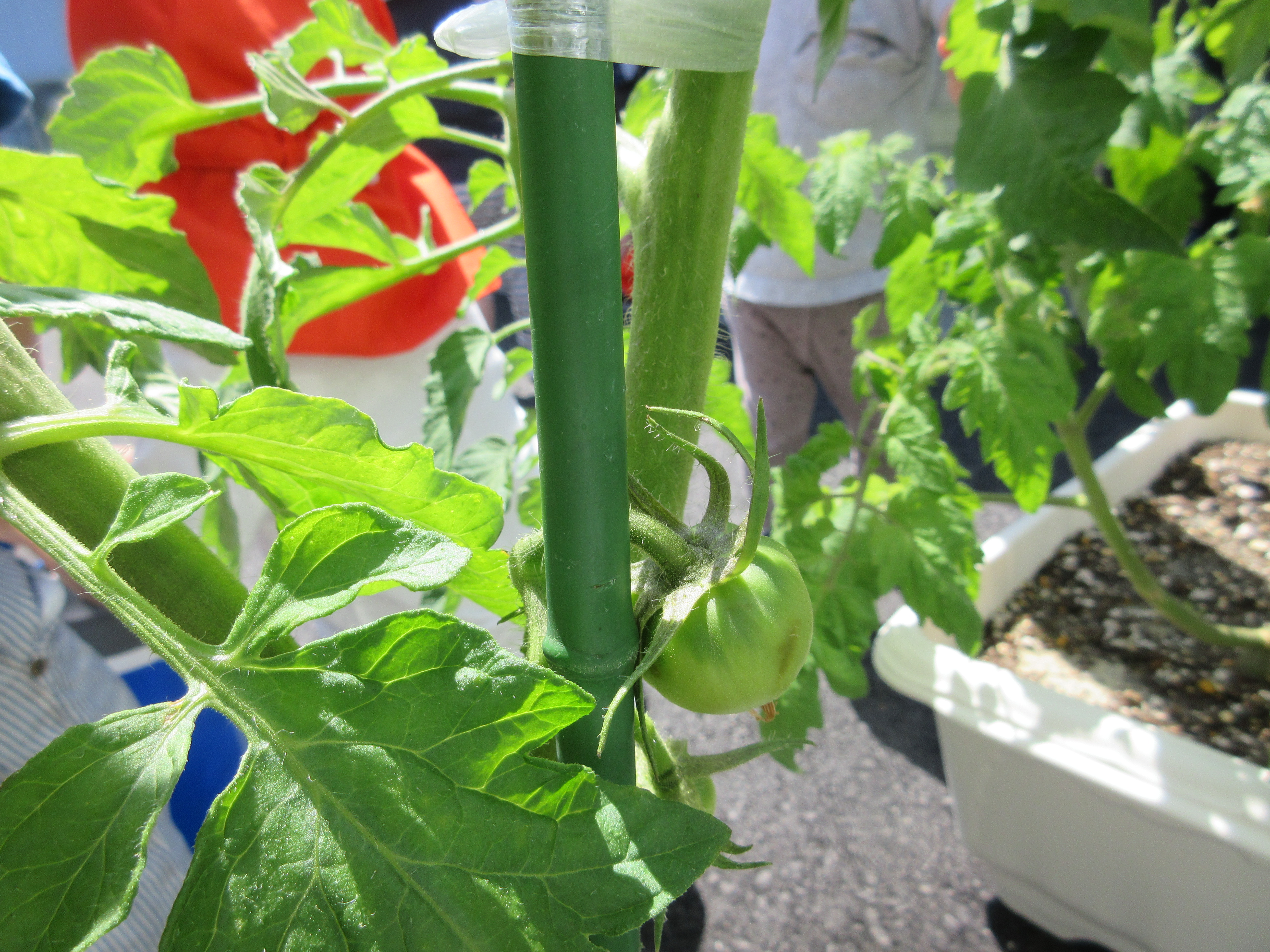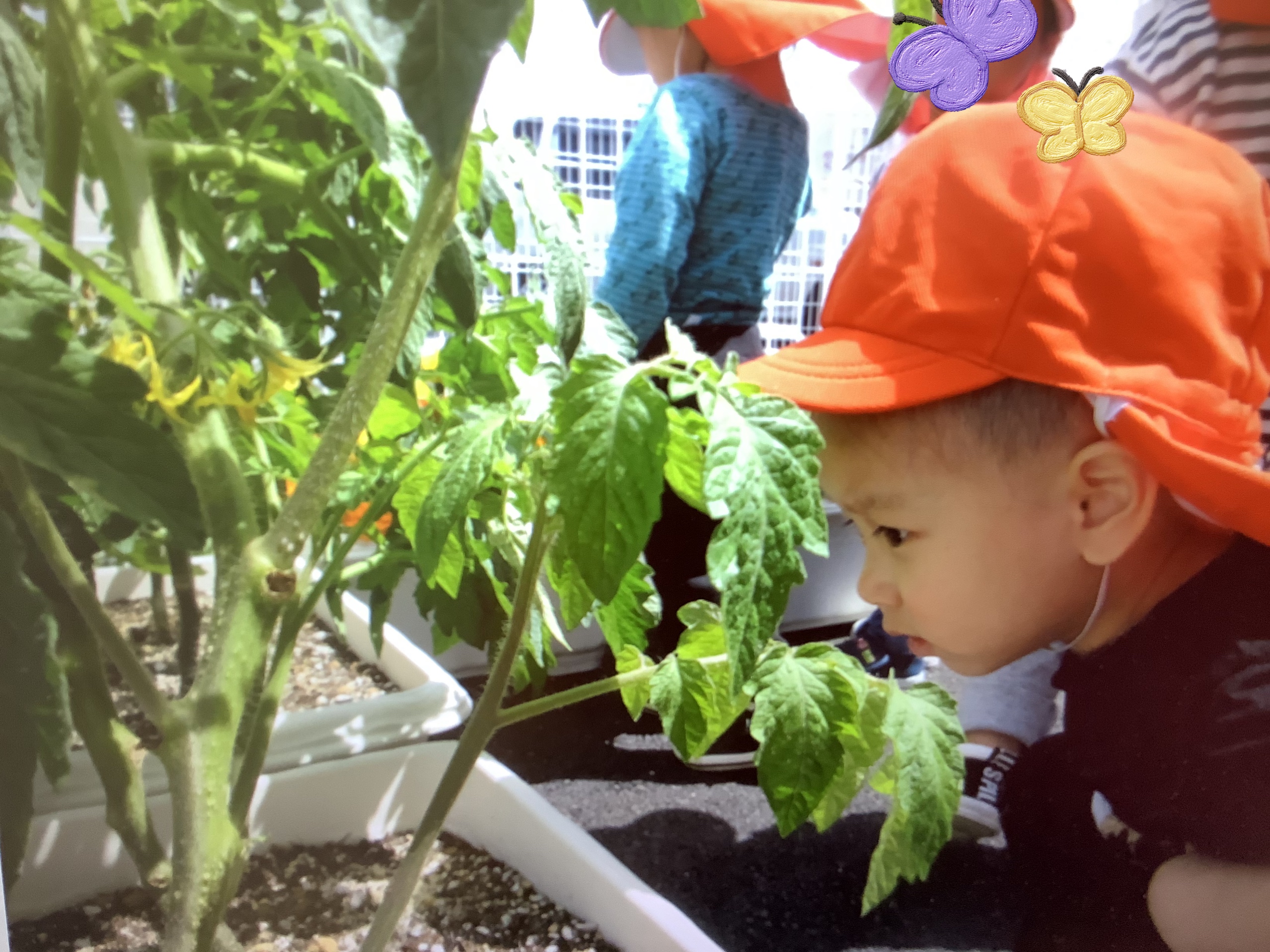 こちらは、何やら育てているトマトを真剣にみています…