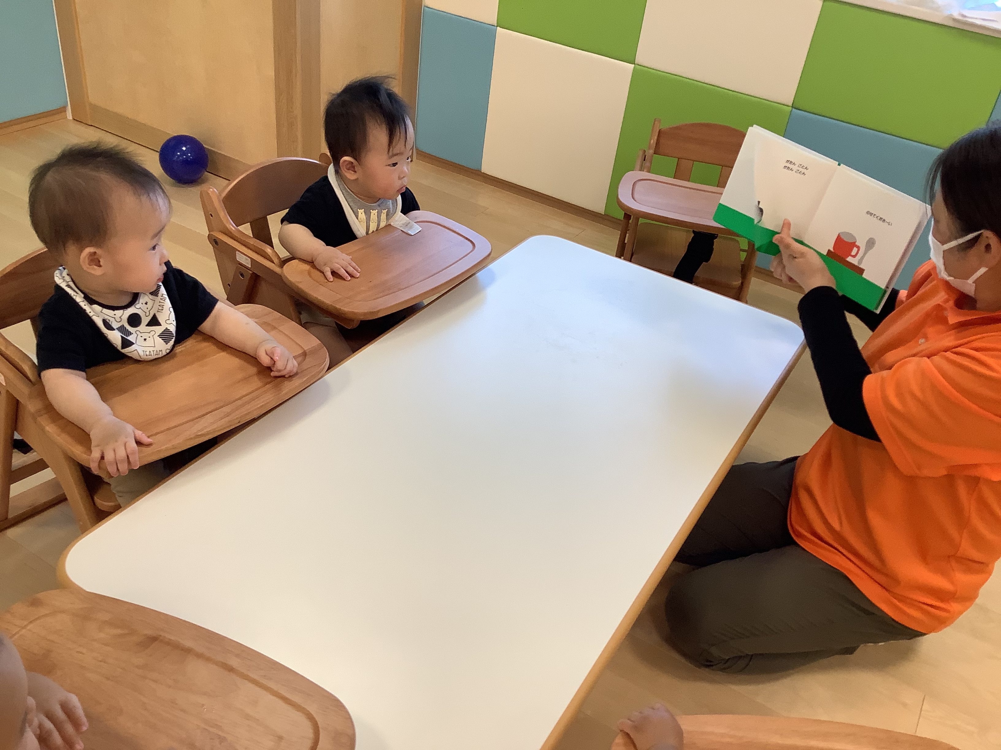 今日は0歳児〝ももぐみ〟のお友だちが絵本をみている様子を紹介します![]()