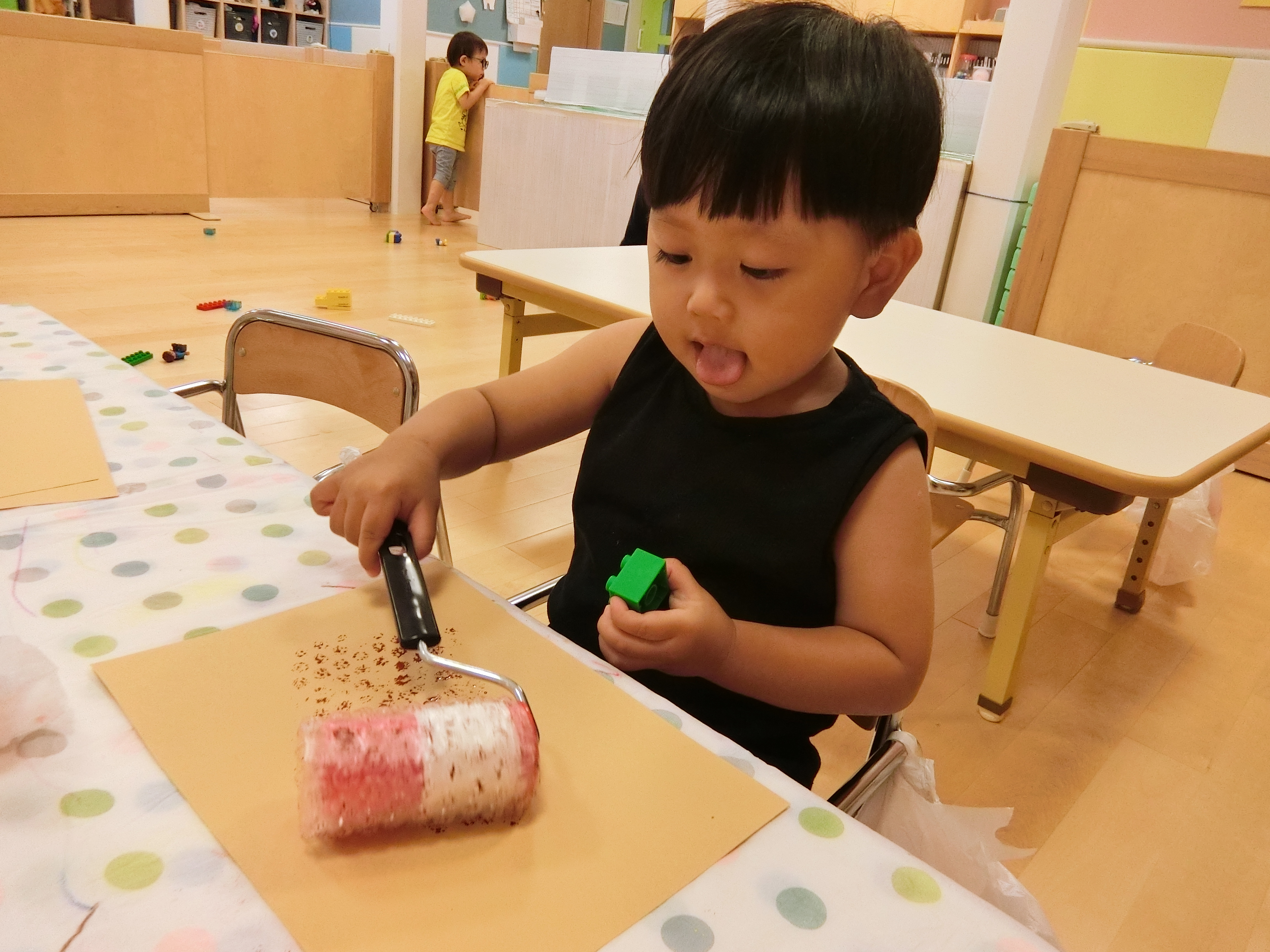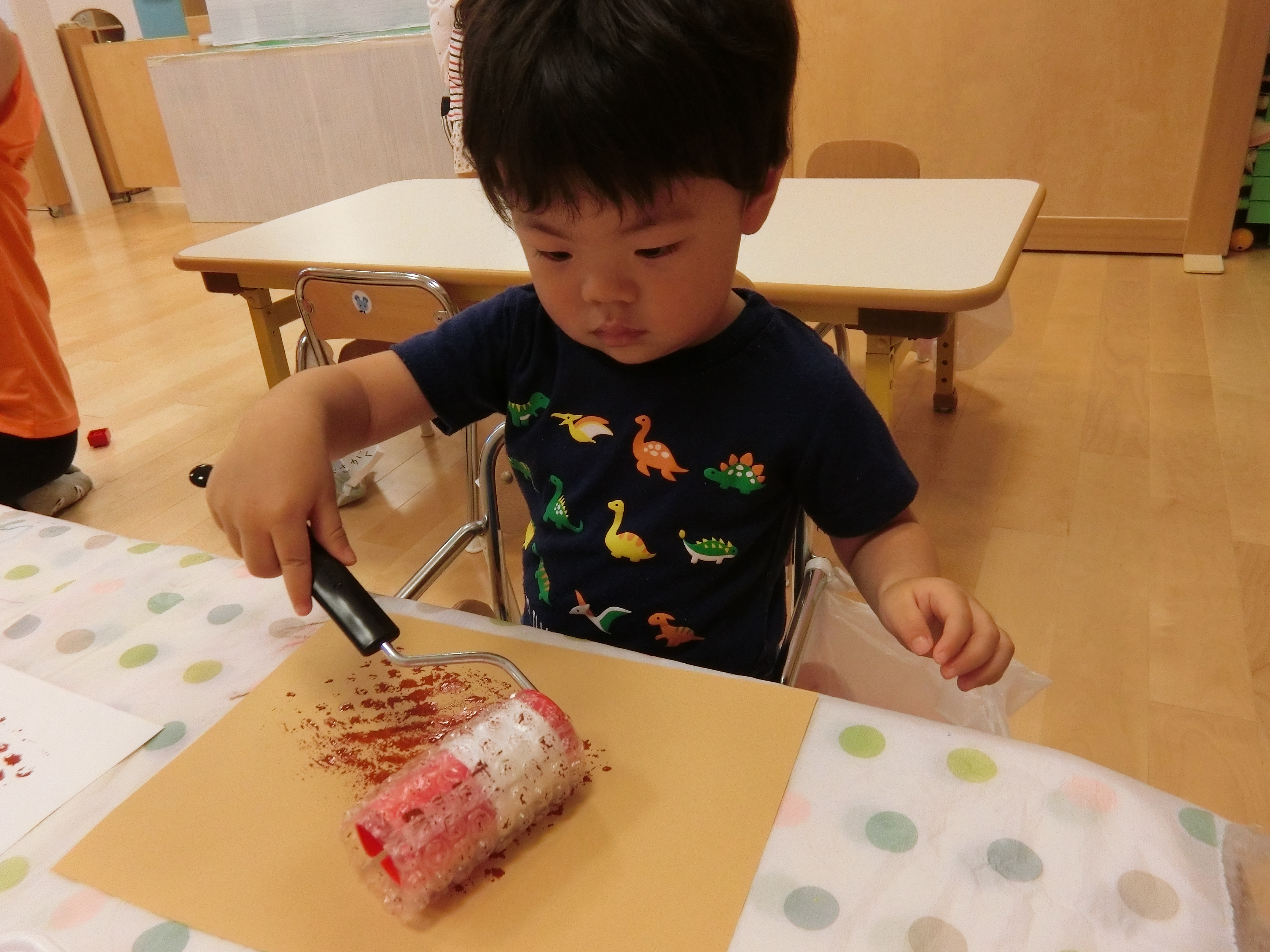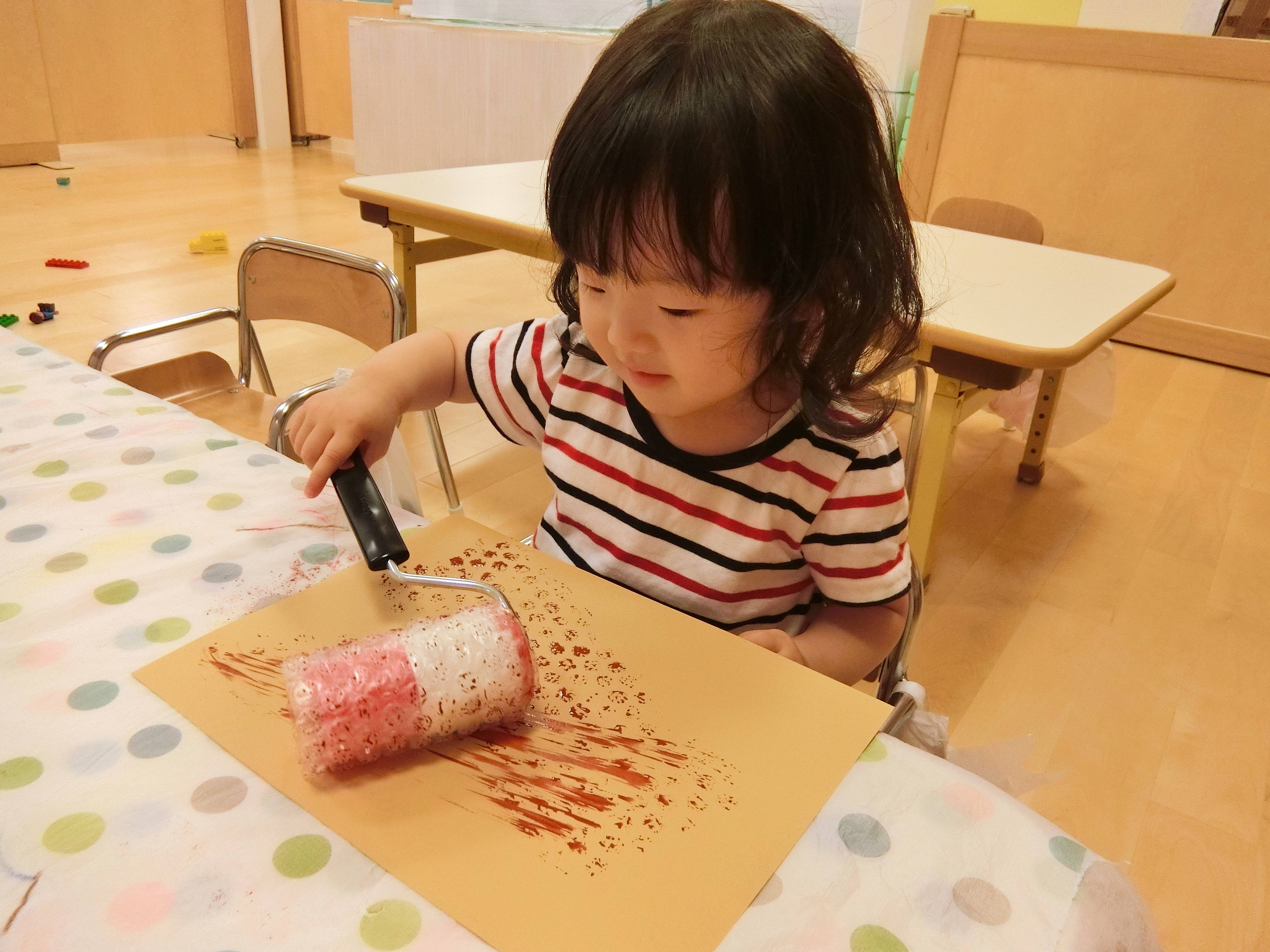 コロコロコロコロっと楽しそうにローラーを転がしプチプチ模様を描いています✨