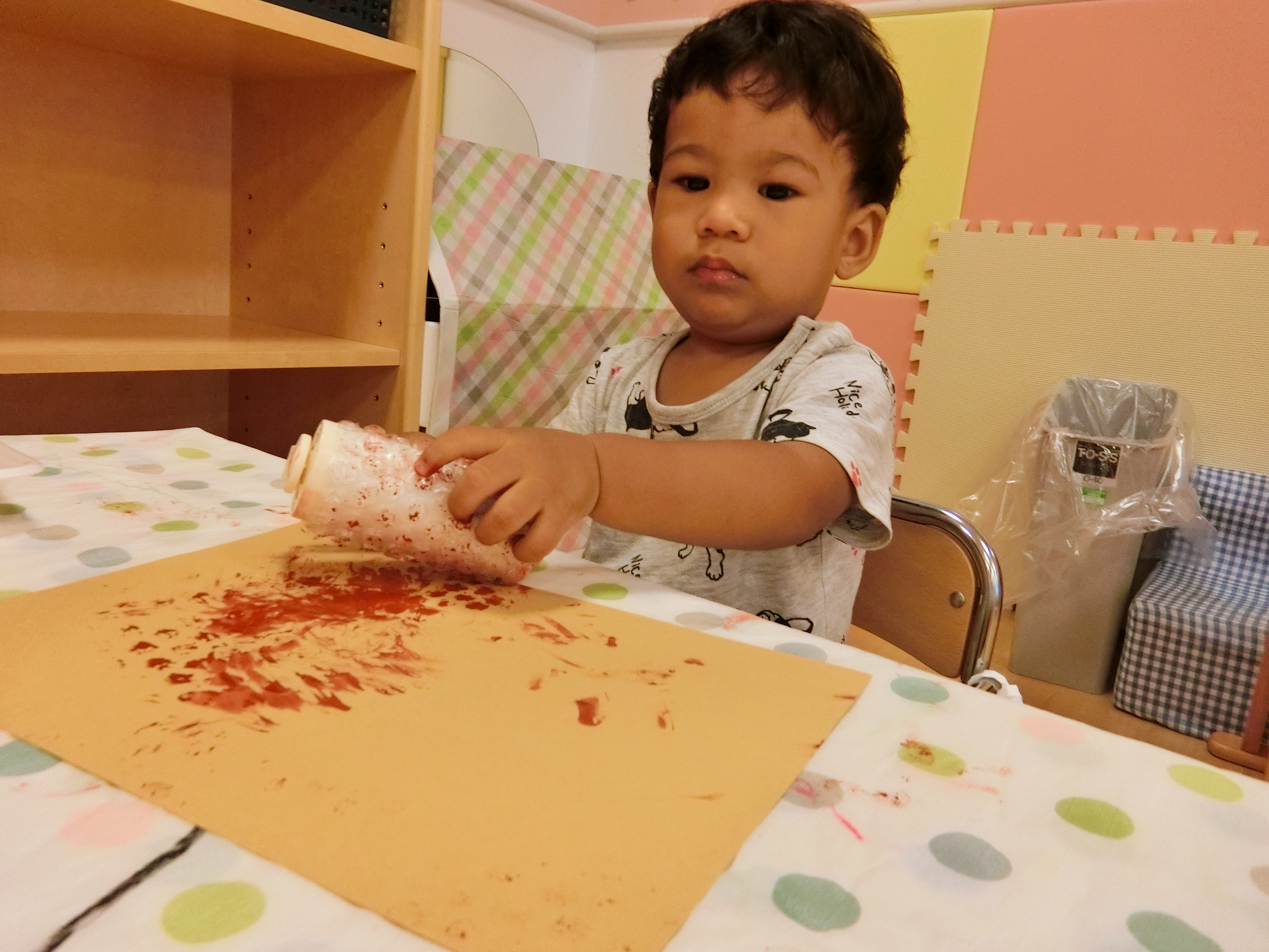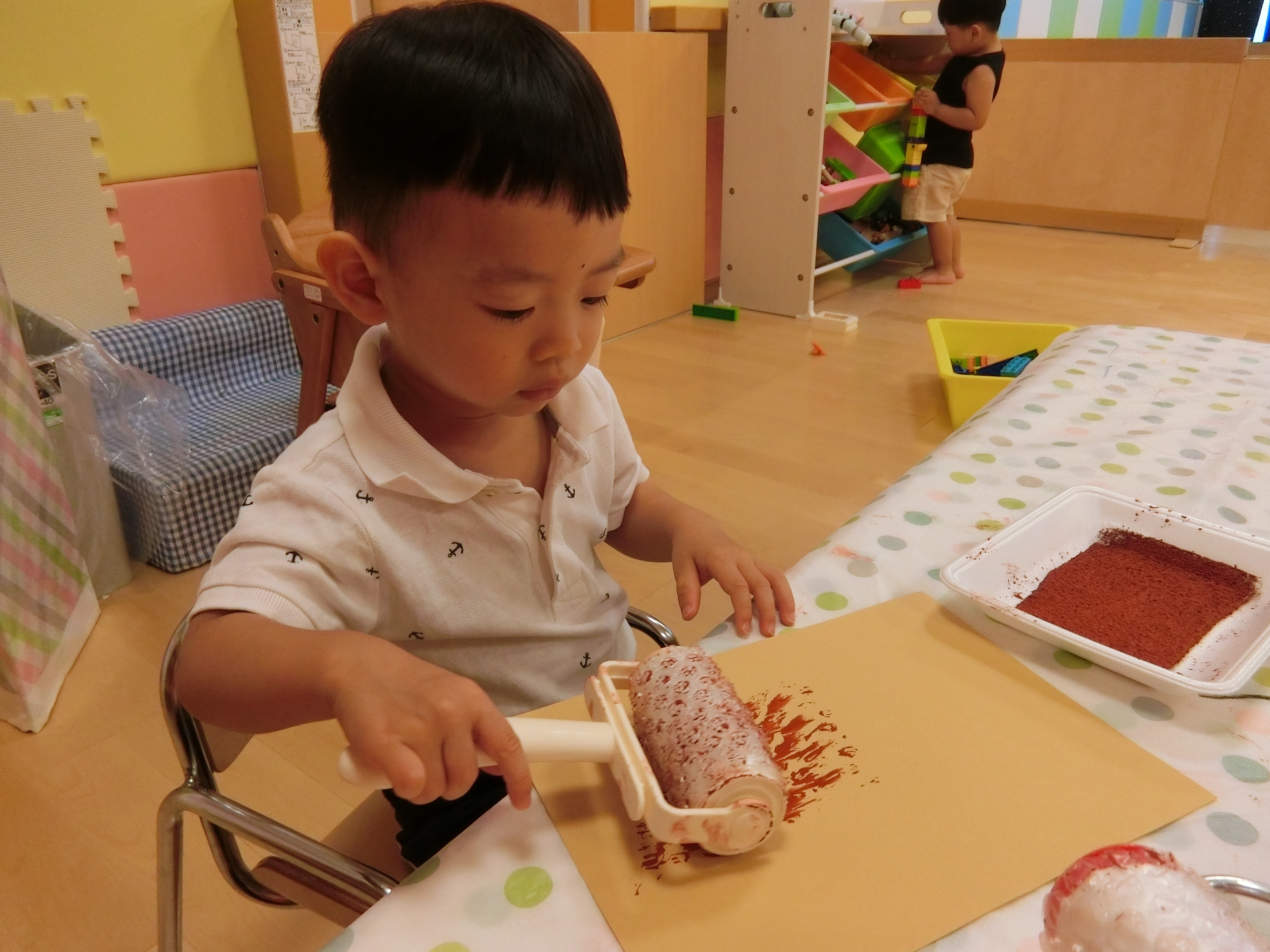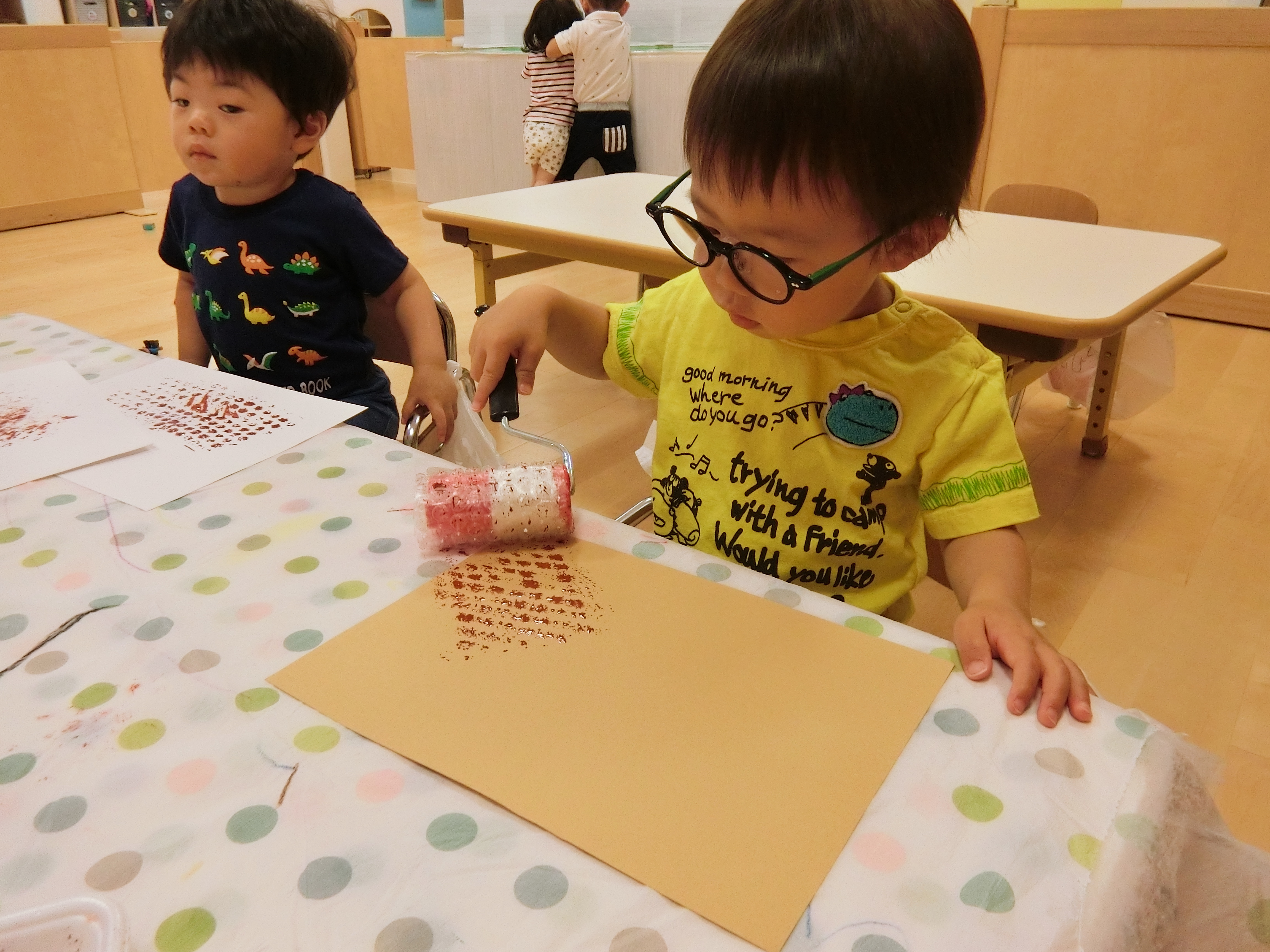 コロコロコロコロっと楽しそうにローラーを転がしプチプチ模様を描いています✨