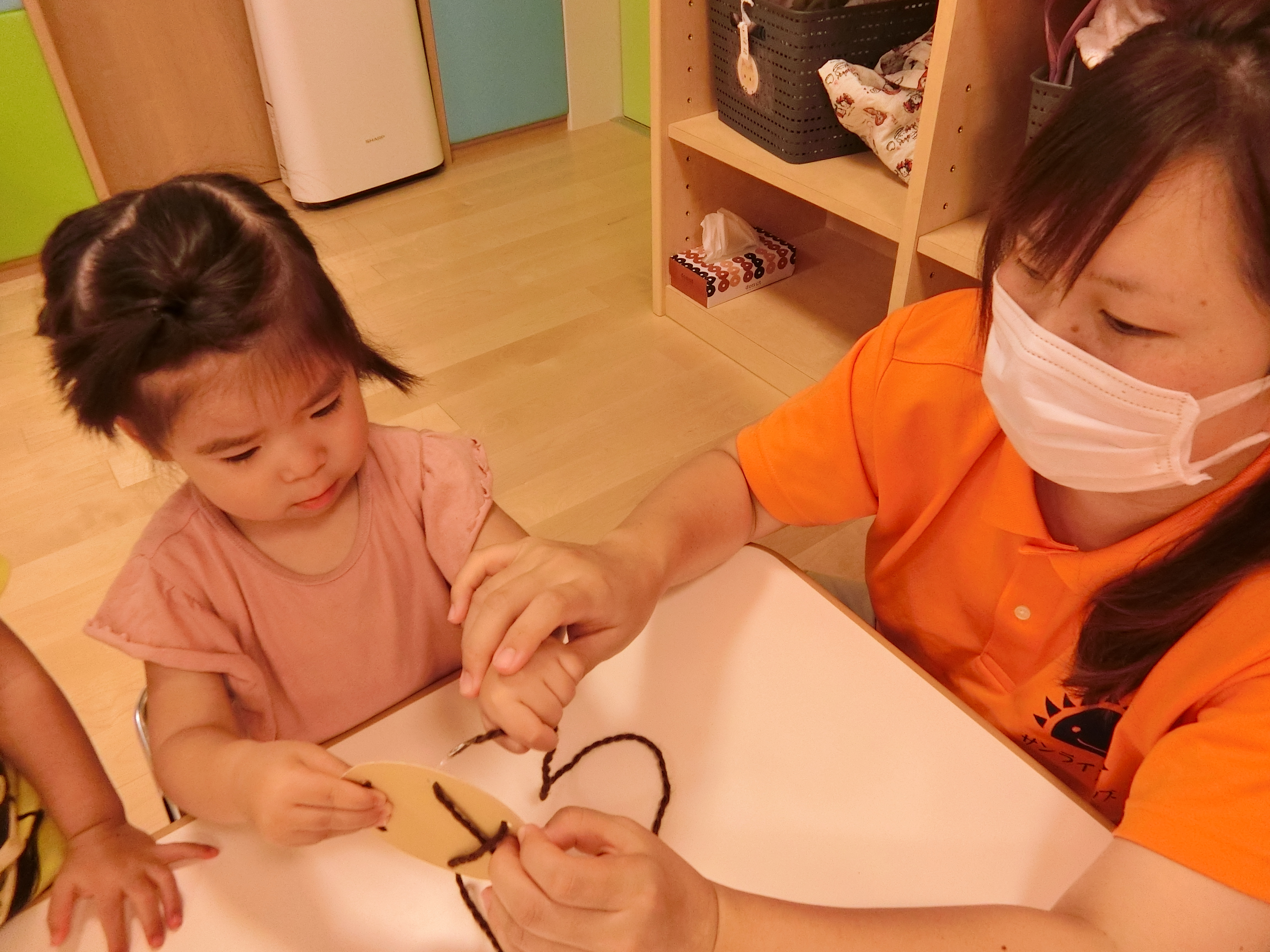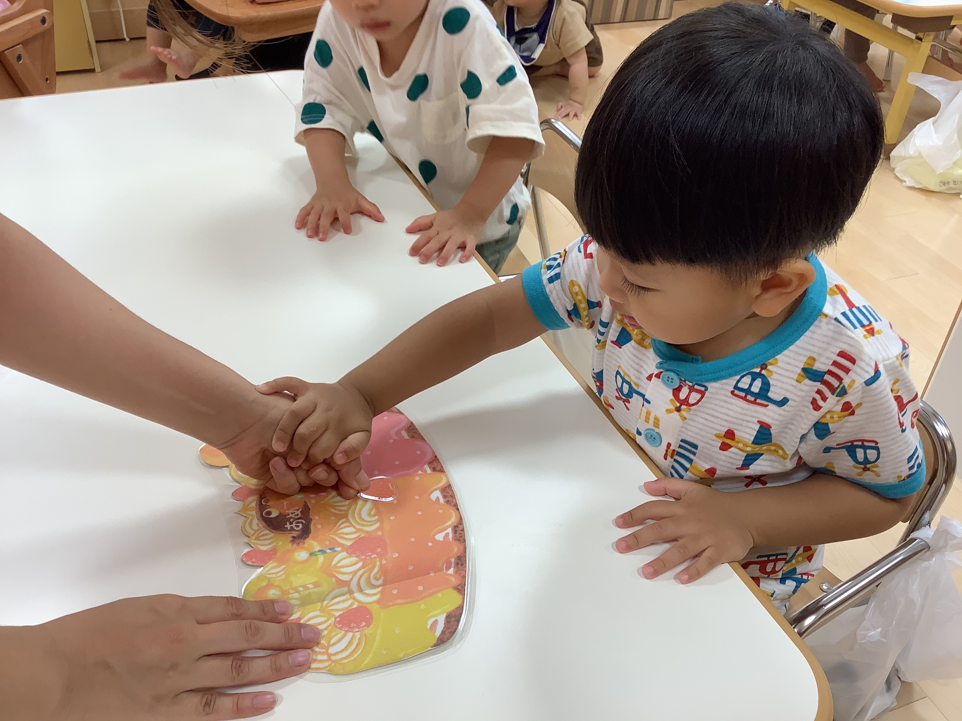 保育者に手を添えてもらったり、自分でやってみたり‥集中して取り組んでいました✨