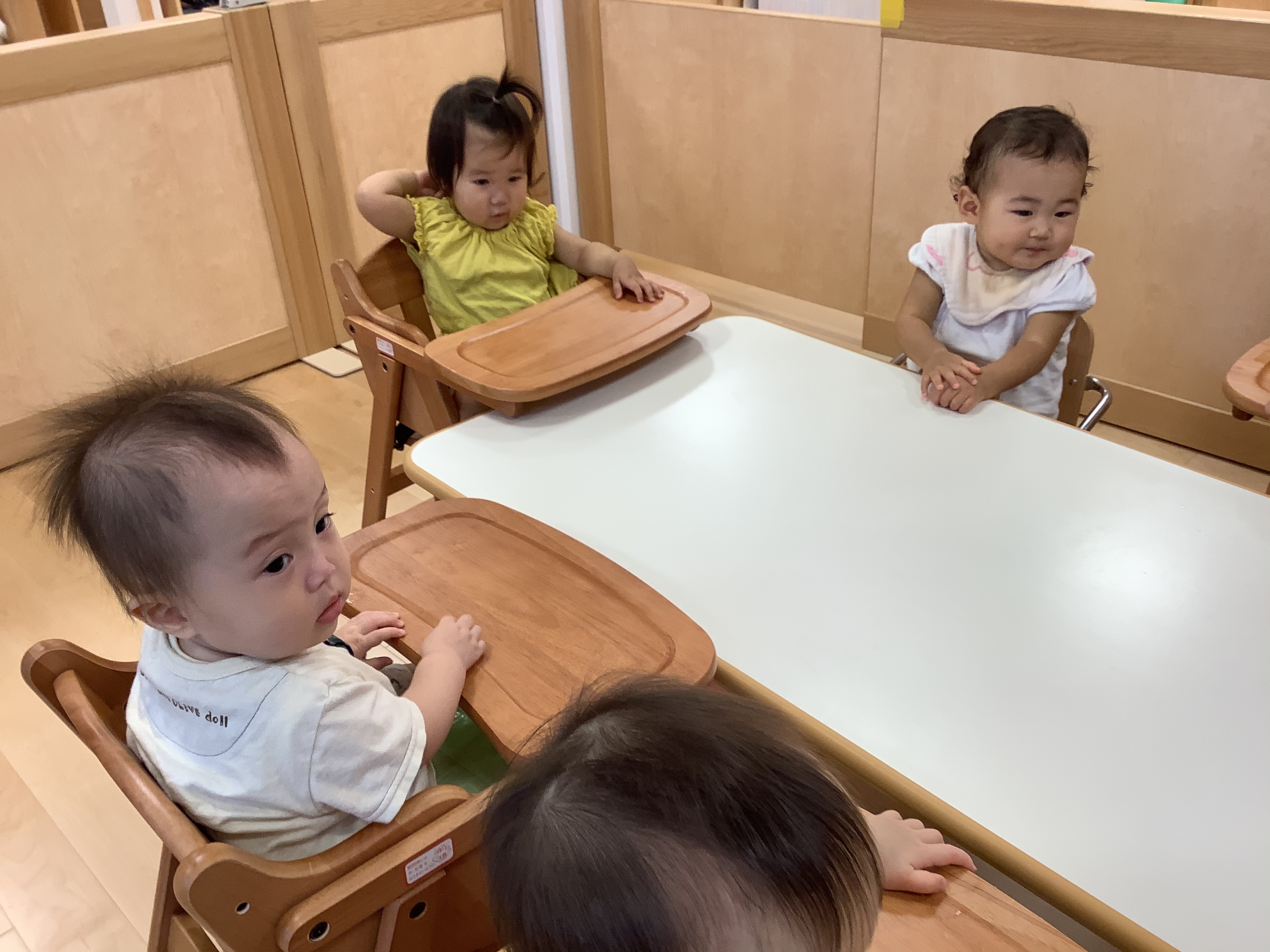 今週は0歳児(ももぐみ?)の子どもたちが絵本をみているところを紹介します?![]()
