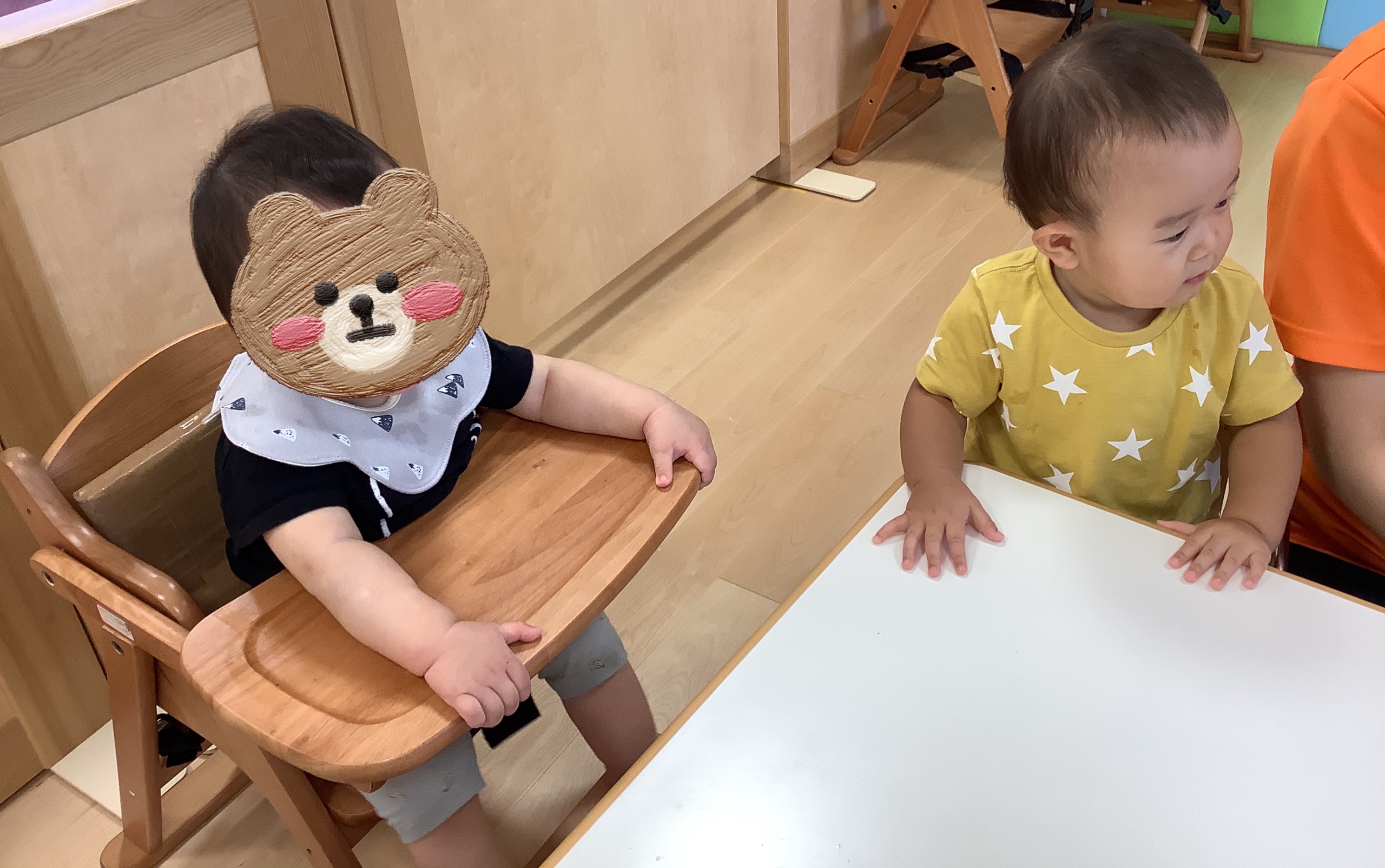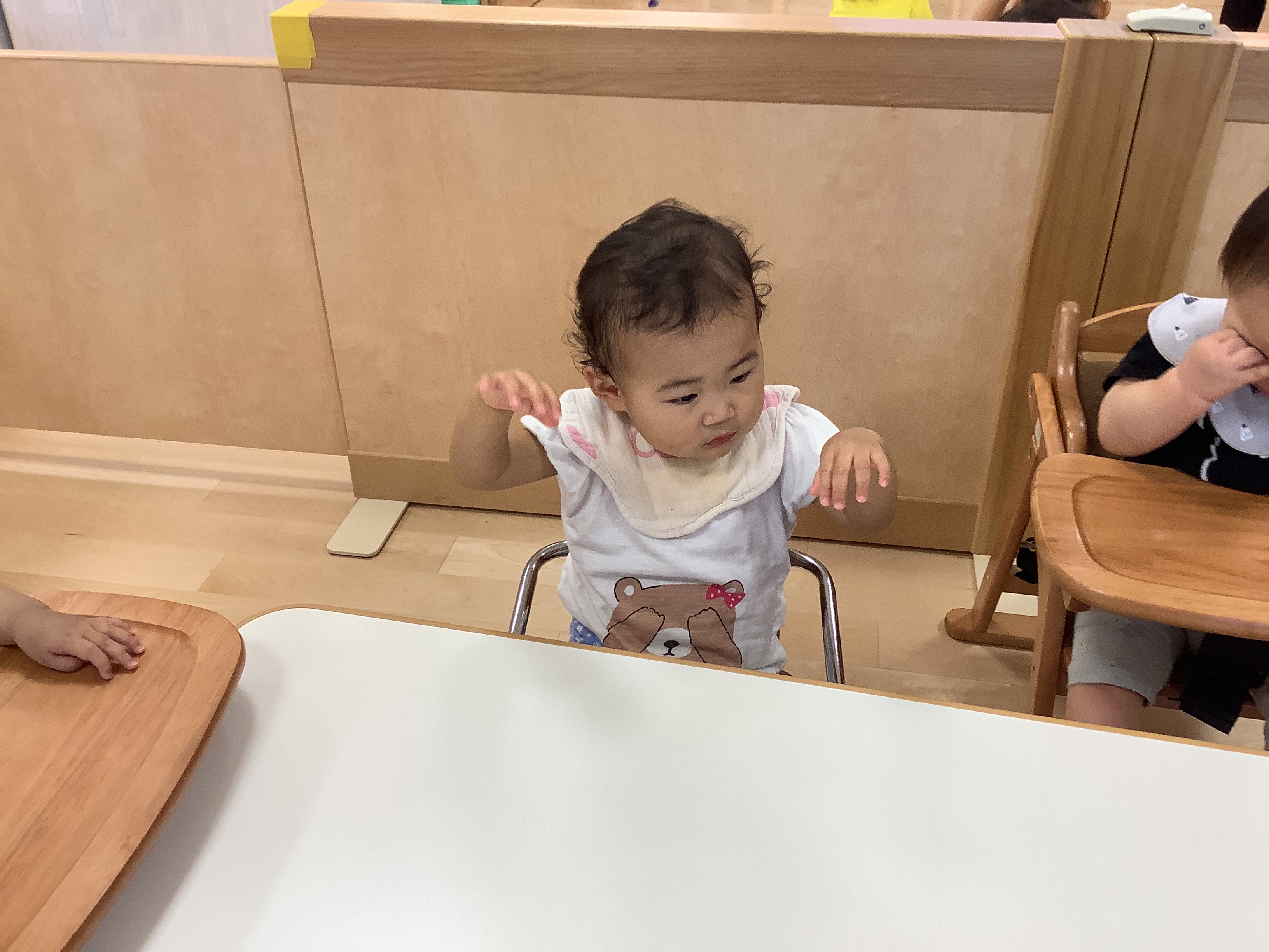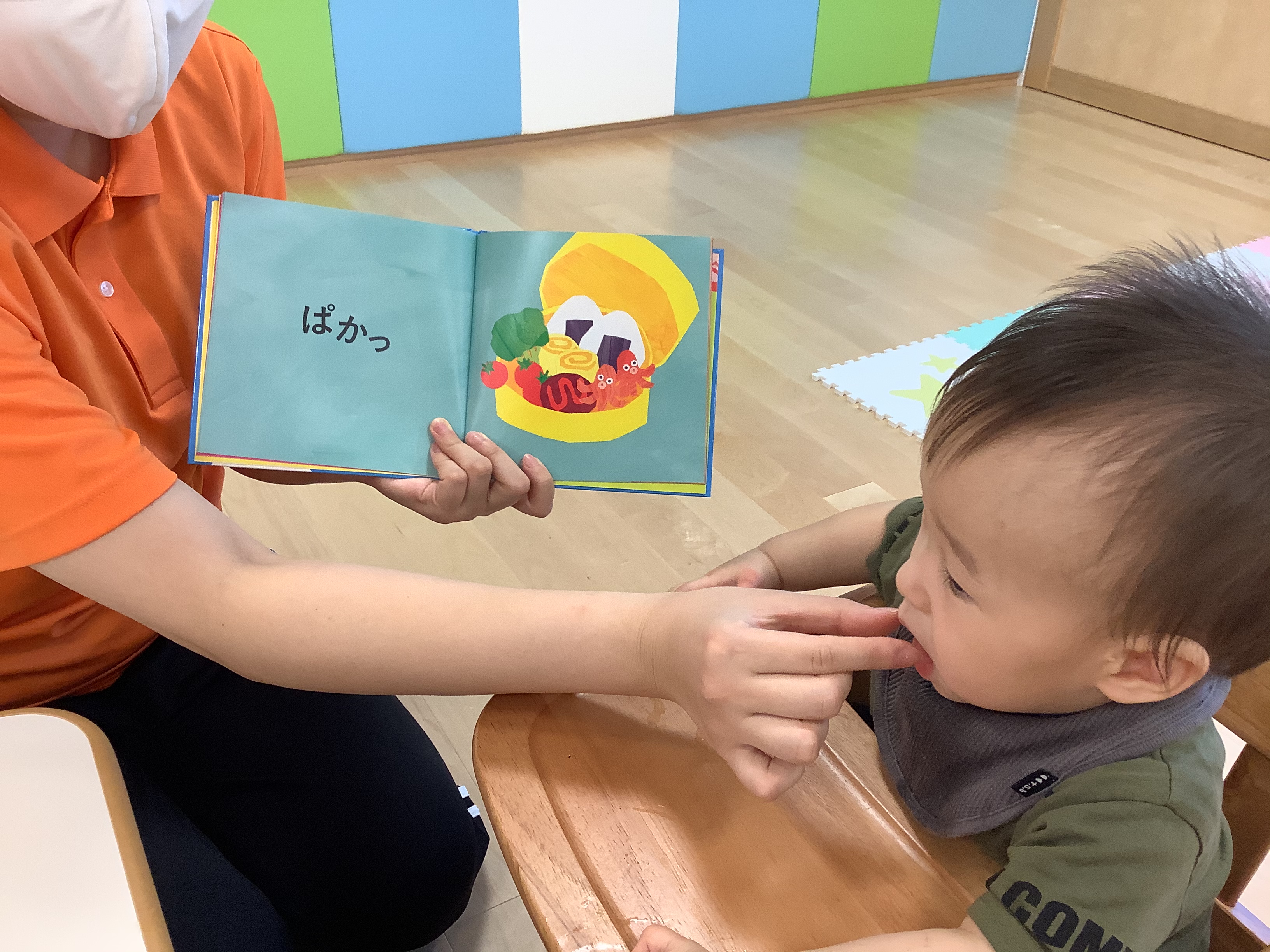 保育者が「ぱかっ」と言うと、マネして「ぱかっ」と言ってみたり…![]()