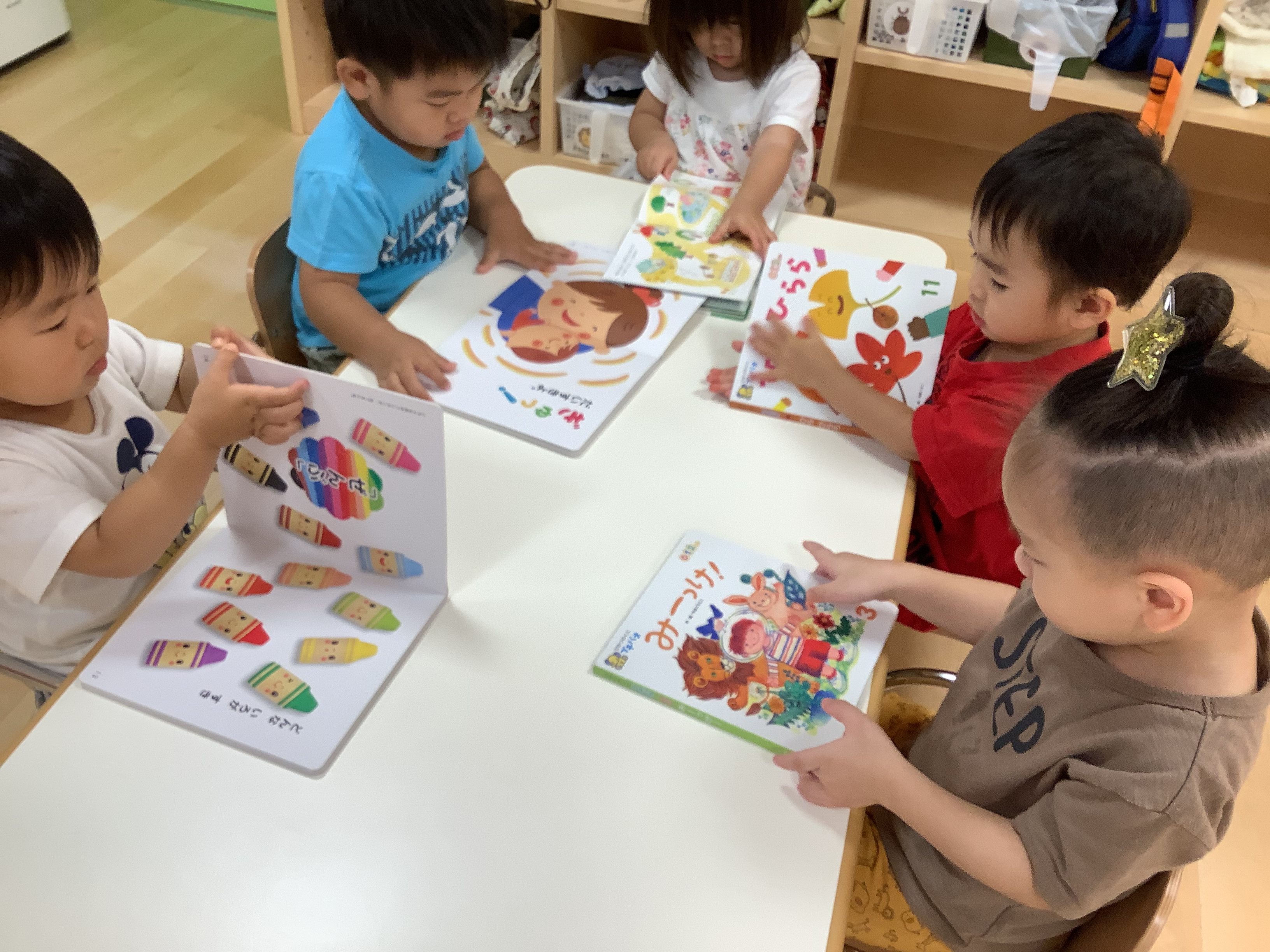 それぞれ気に入った絵本を手に取り、みんな集中しています‼️