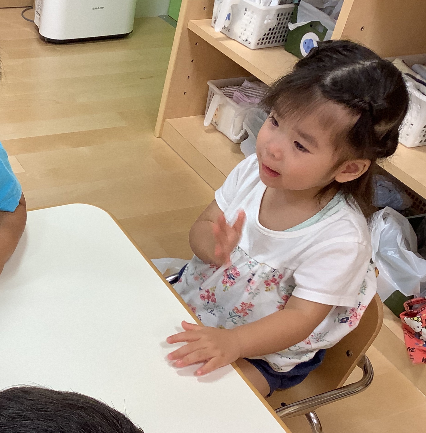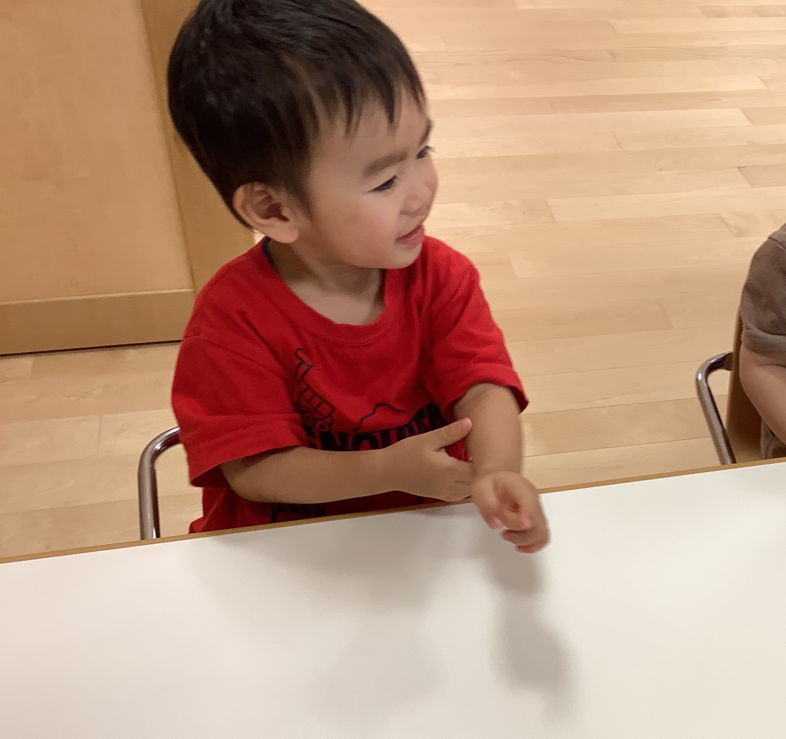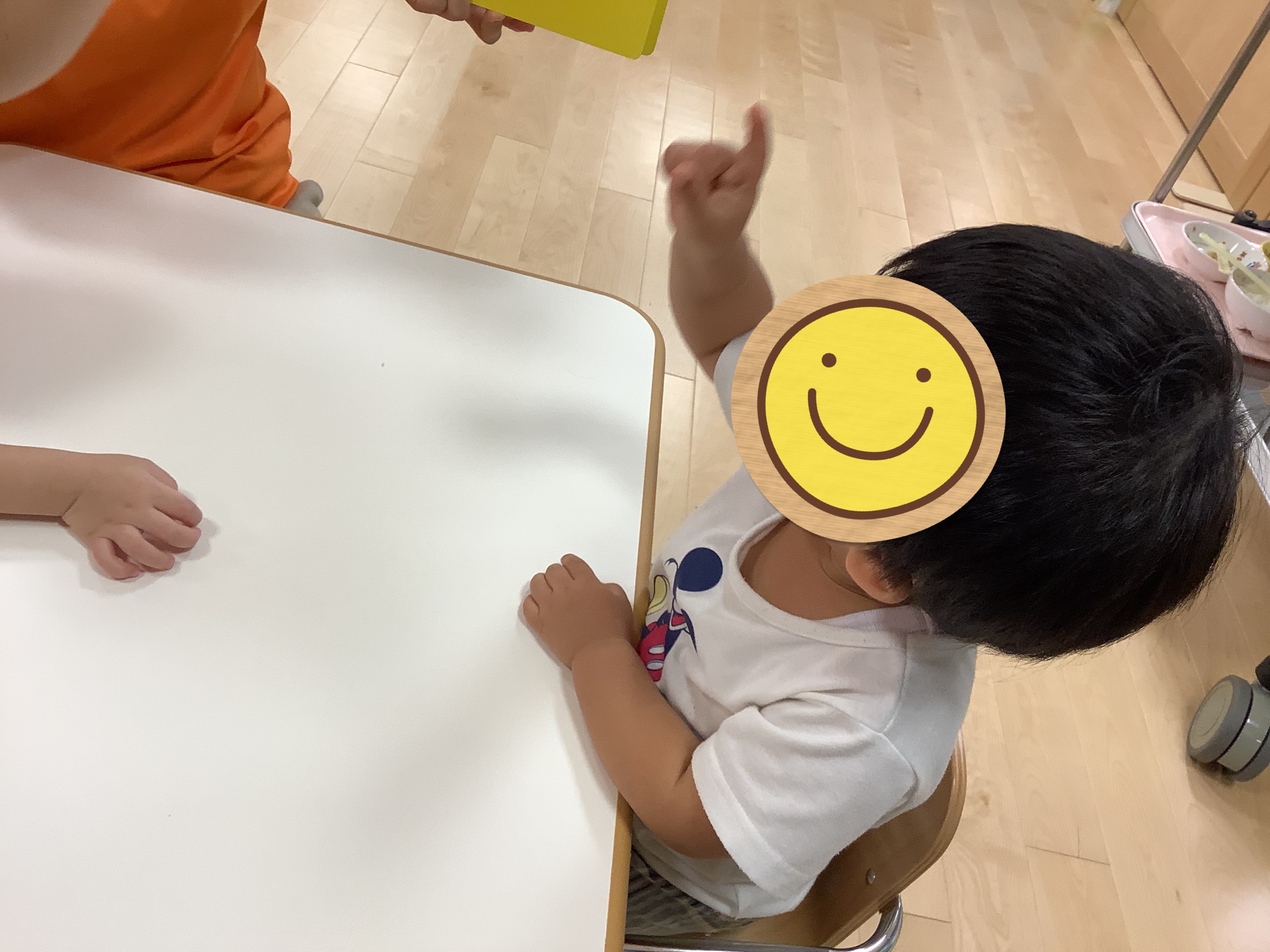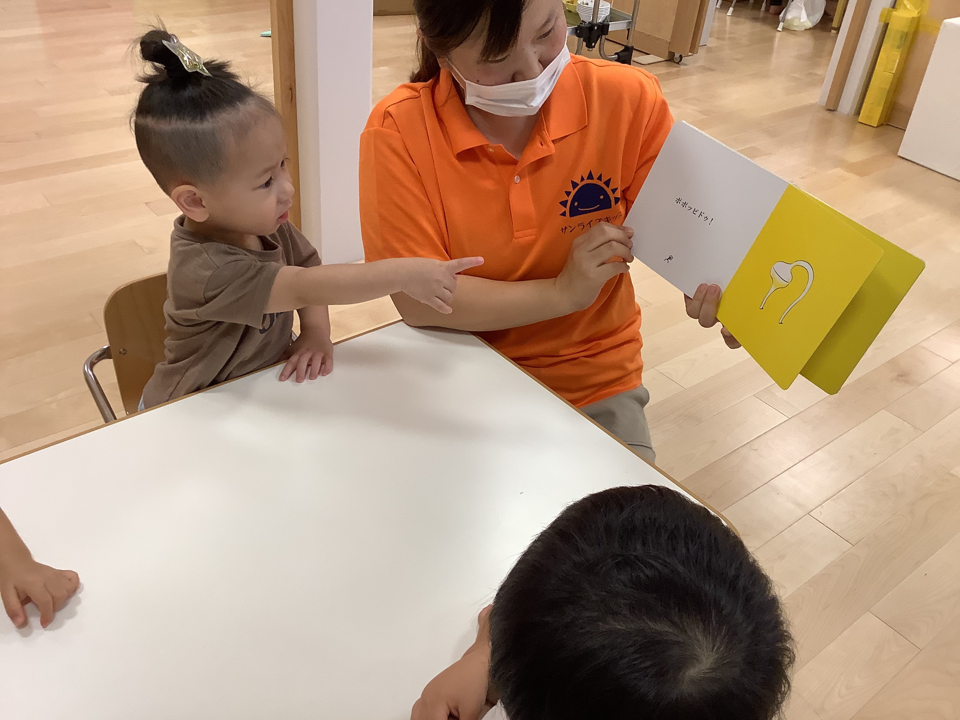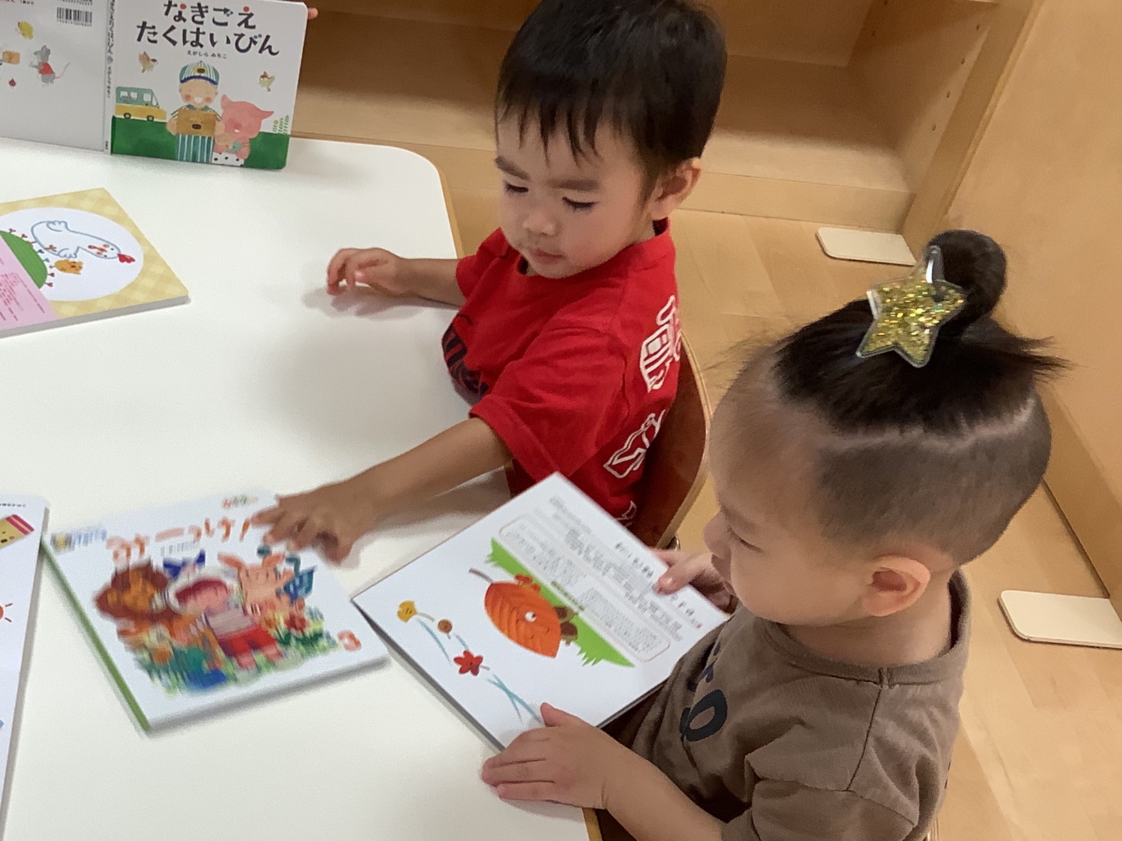 自分が見ていた絵本が見終わって、友だちが持っている絵本と変えてほしいなぁ〜…と、黙って手をのばそうとしています…