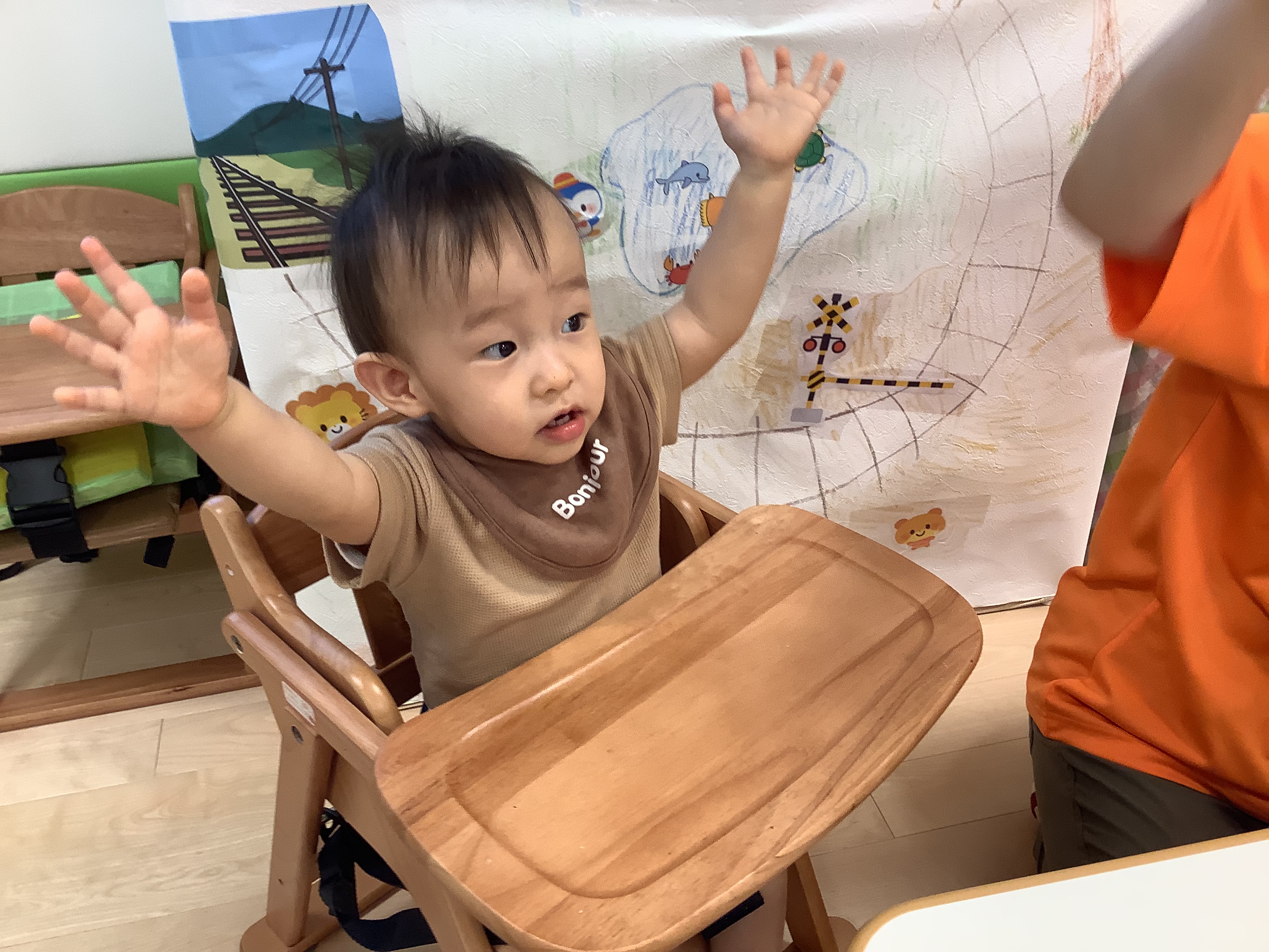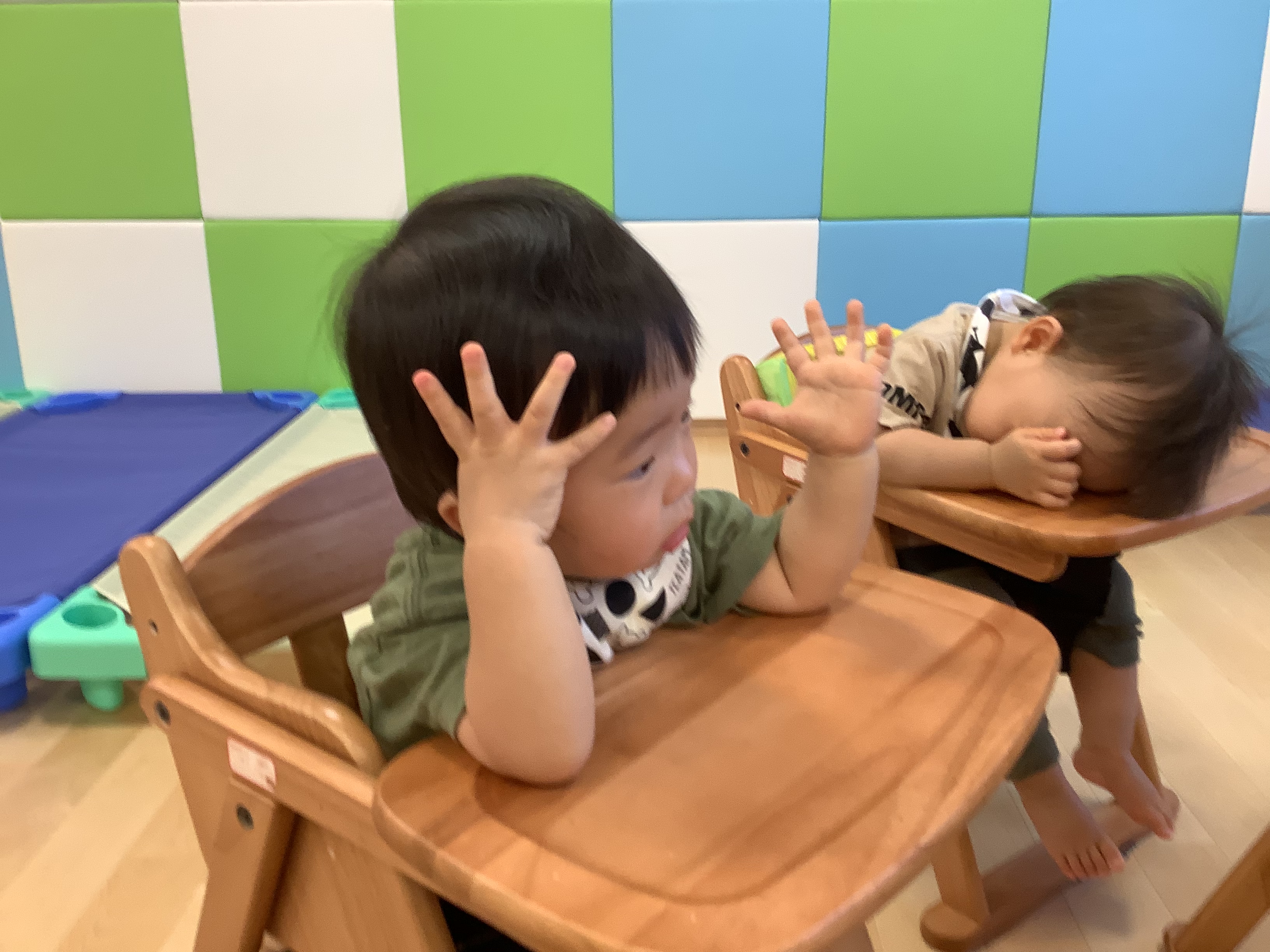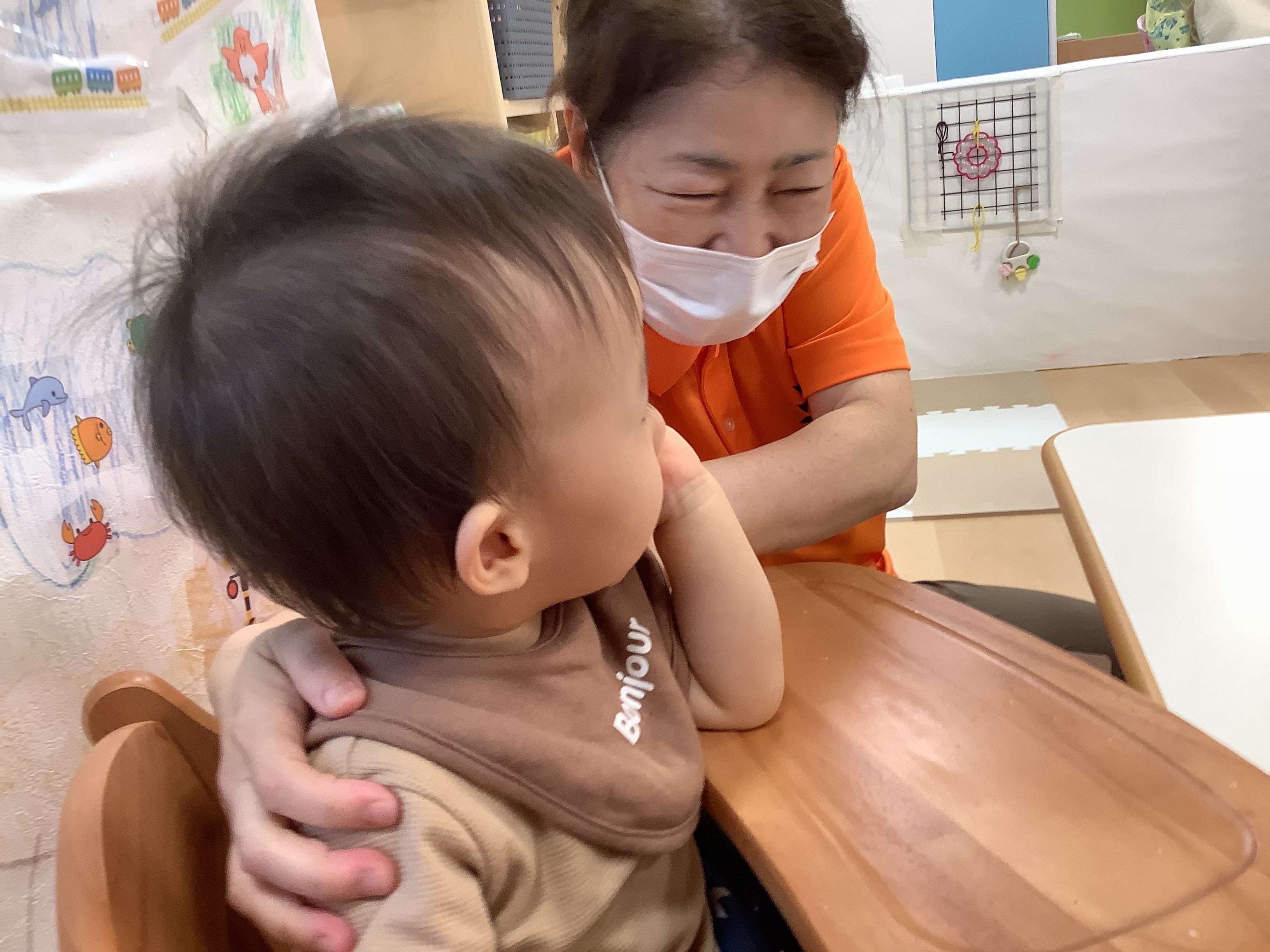 友だちのマネっこ‥保育者のマネっこ‥マネっこが、どんどん上手になってきた0歳児(もも組)の子どもたち✨