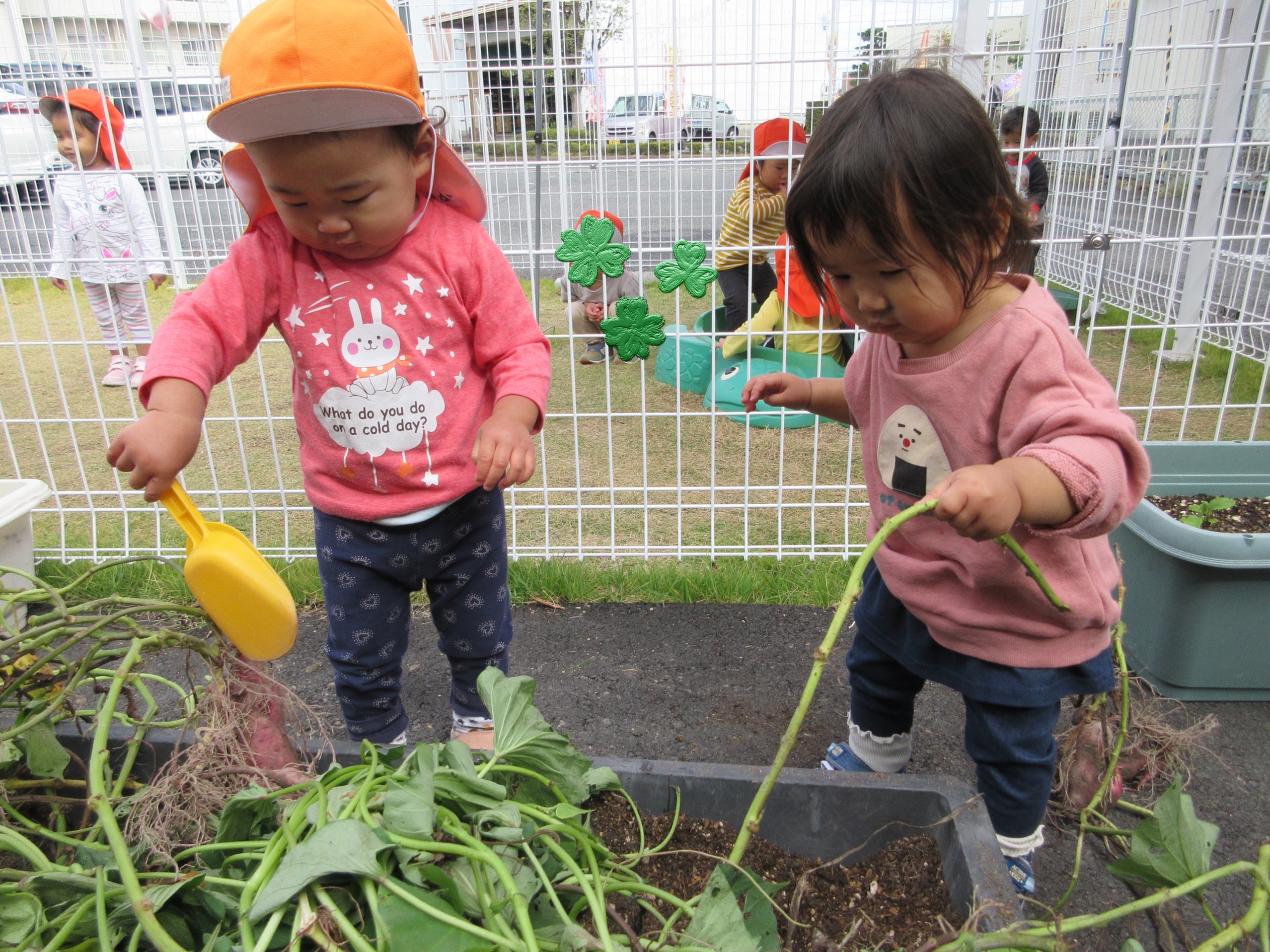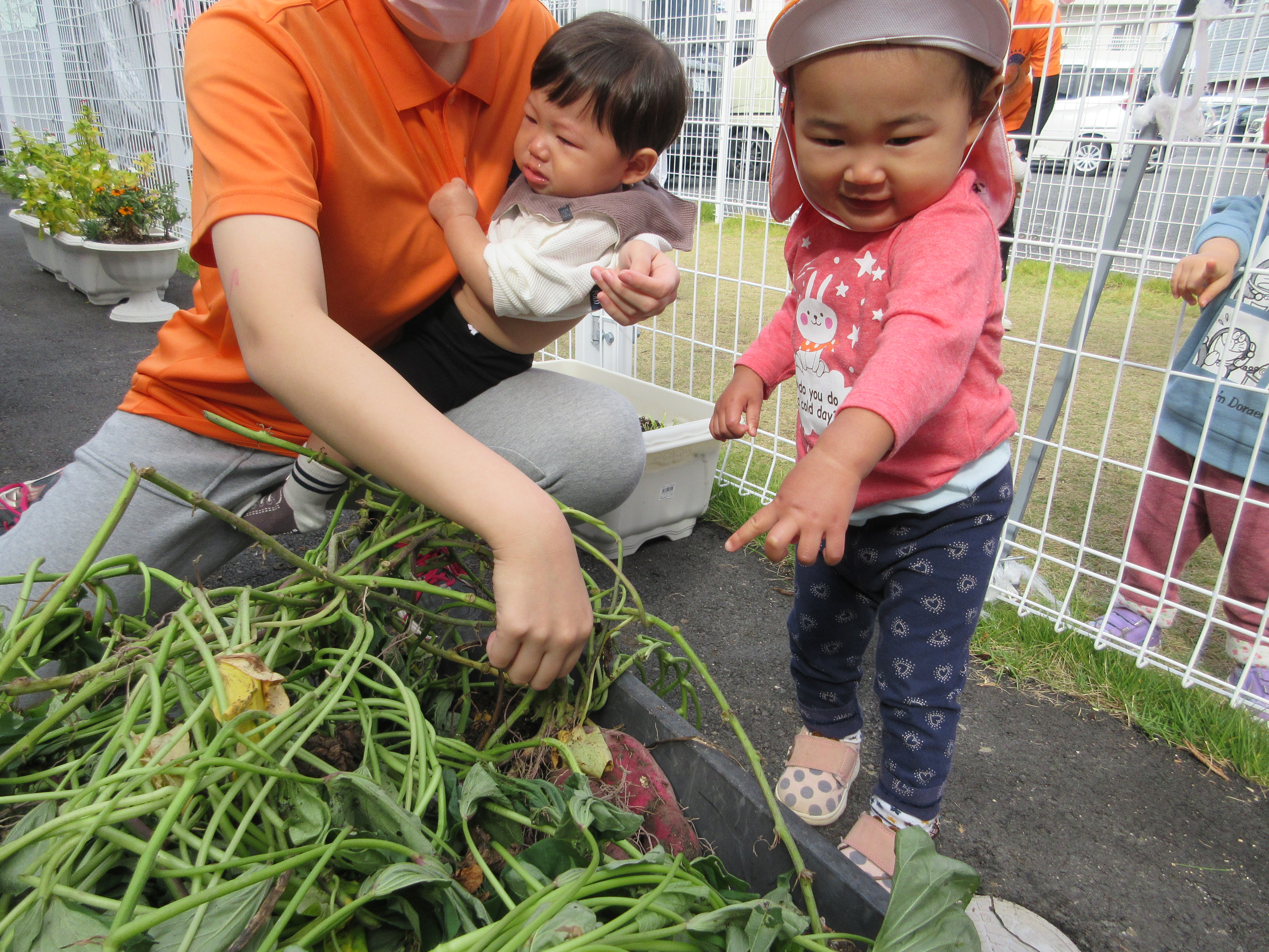 ツルを引っ張ったり、土を触ったり、サツマイモを洗ったり、食べたり…食育につながる貴重な体験ができた一週間でした(о´∀`о)♡