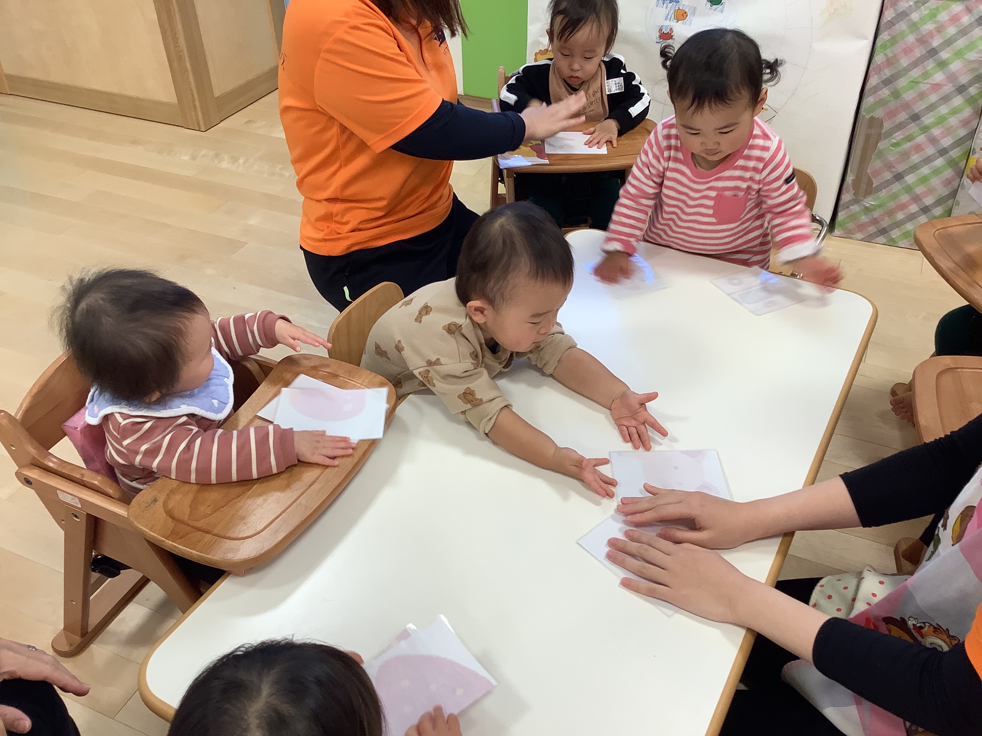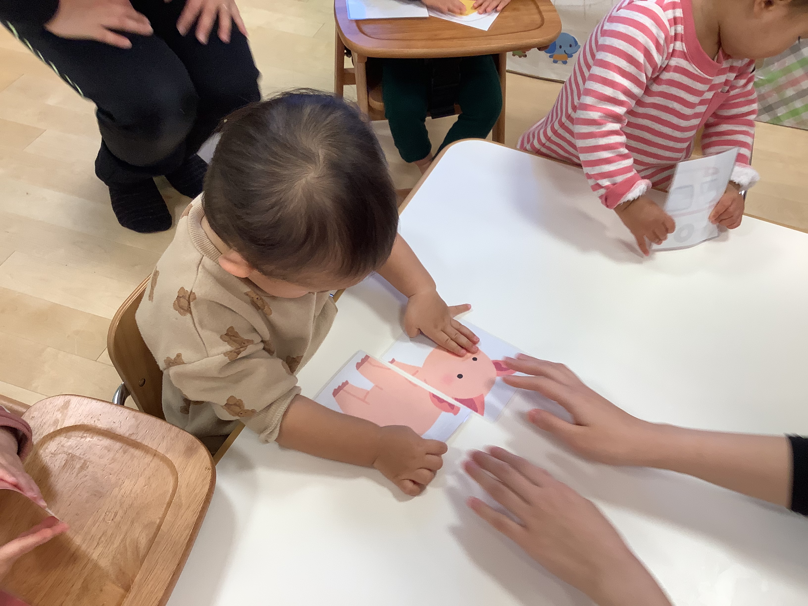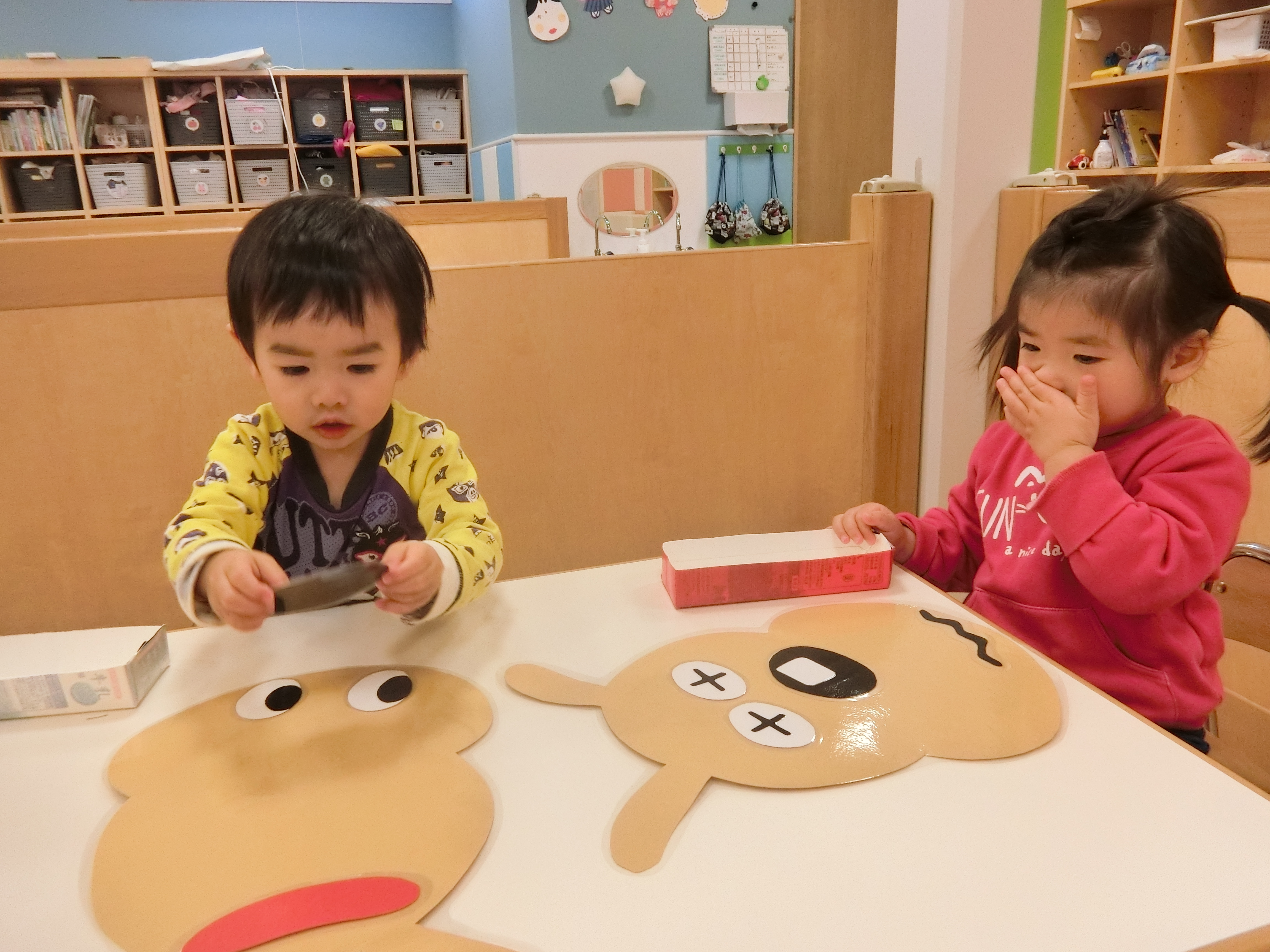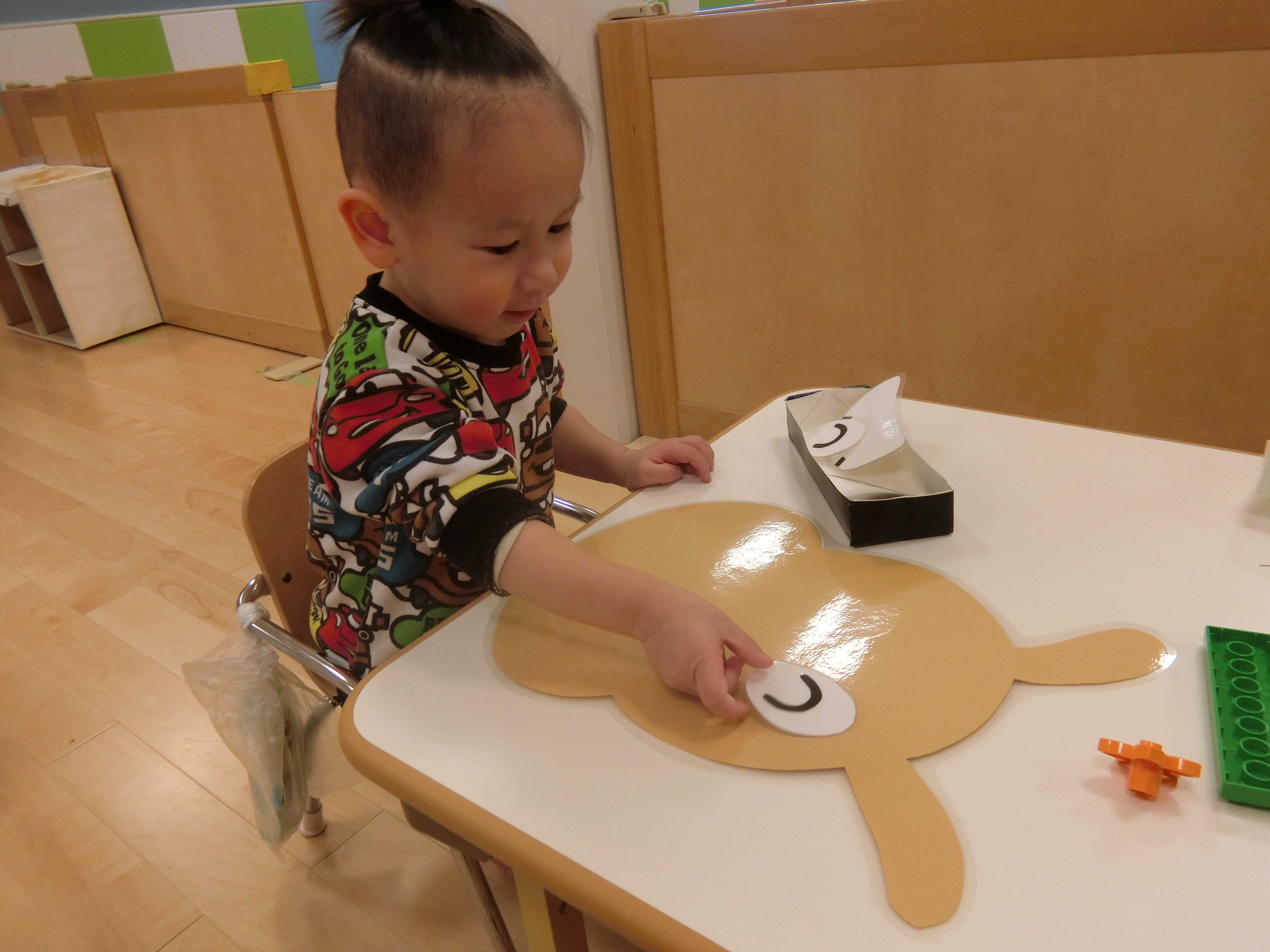 眉毛・目・鼻・ほっぺ・口‥それぞれのパーツを〝どこかなぁ〜??〟と考えながら置いています♫