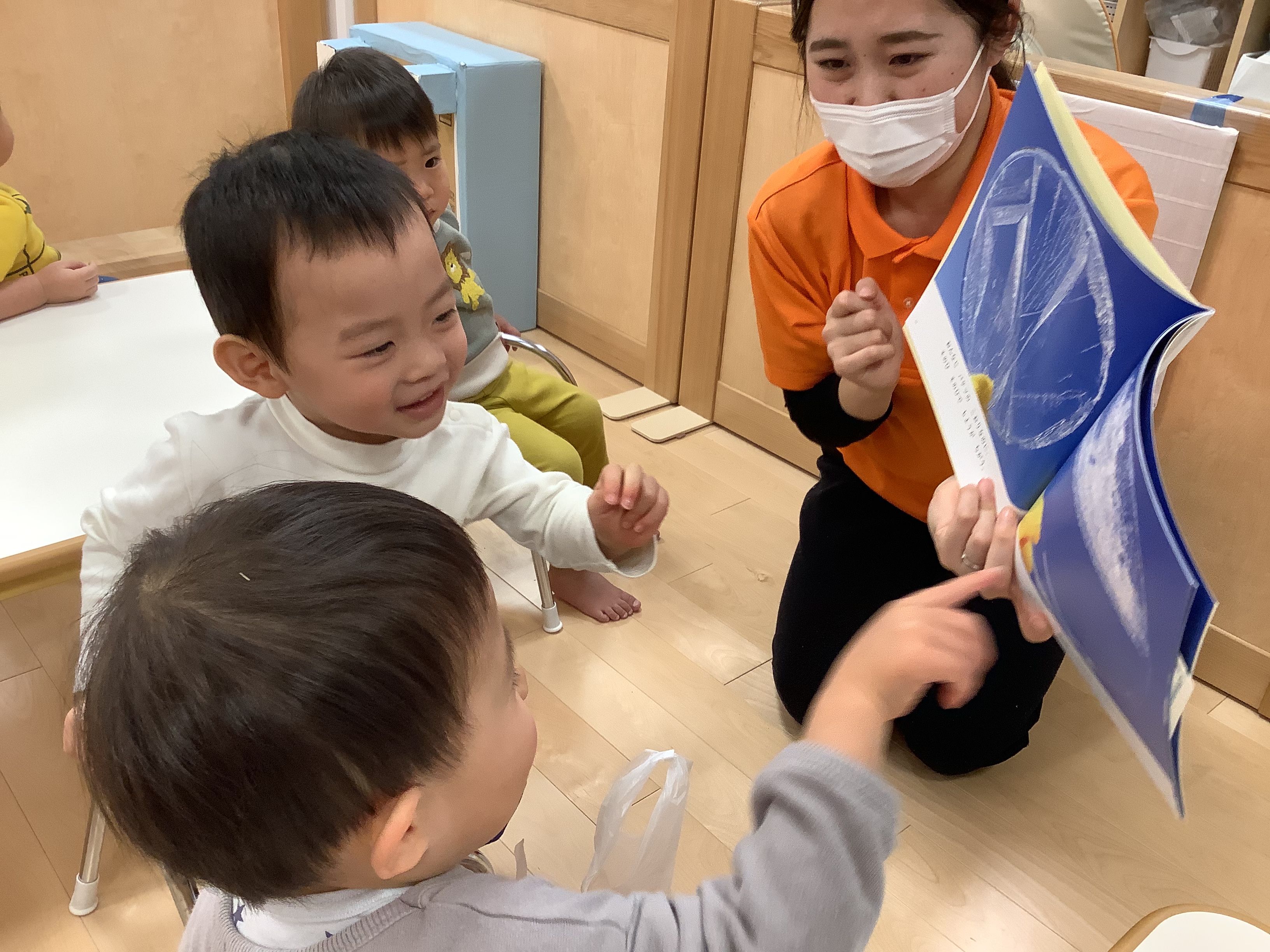 絵本に載っているキラキラの氷をみて、「さわりたーい♡」と胸をワクワクさせている子どもたち?