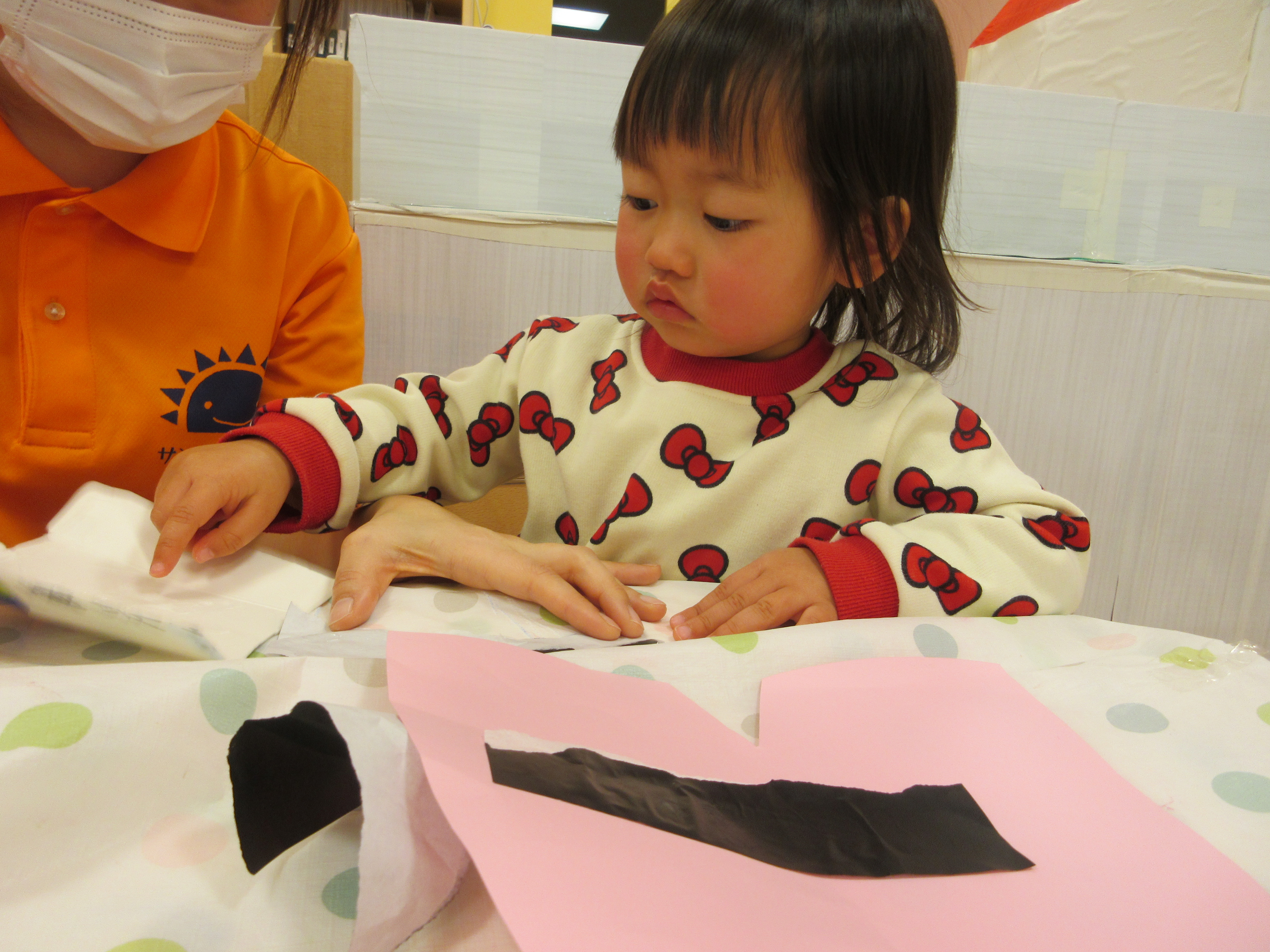 たくさん貼り付ける子もいれば、少しだけ張り付ける子もいたり…それぞれ個性が出ていますね(^ ^)♬