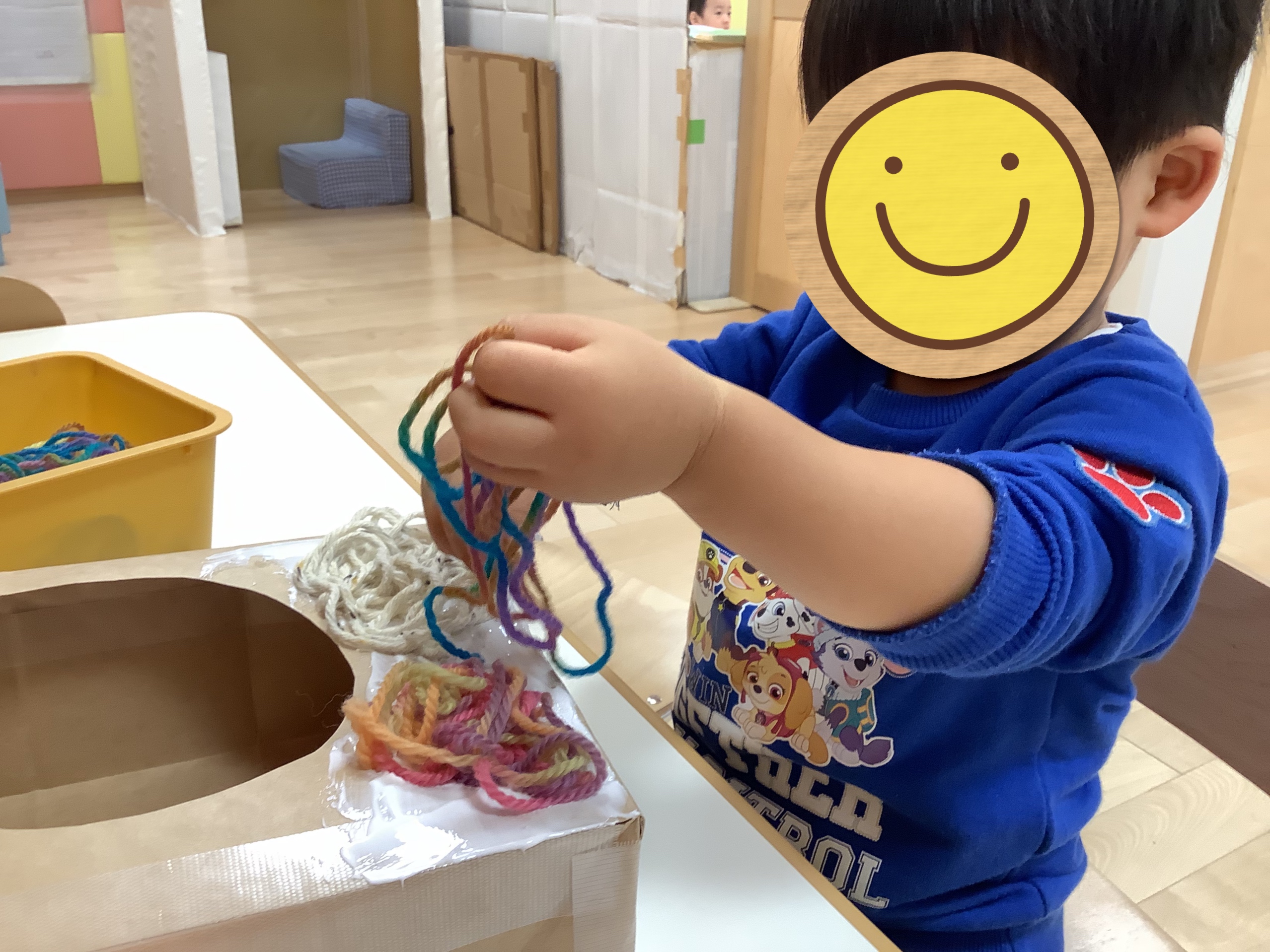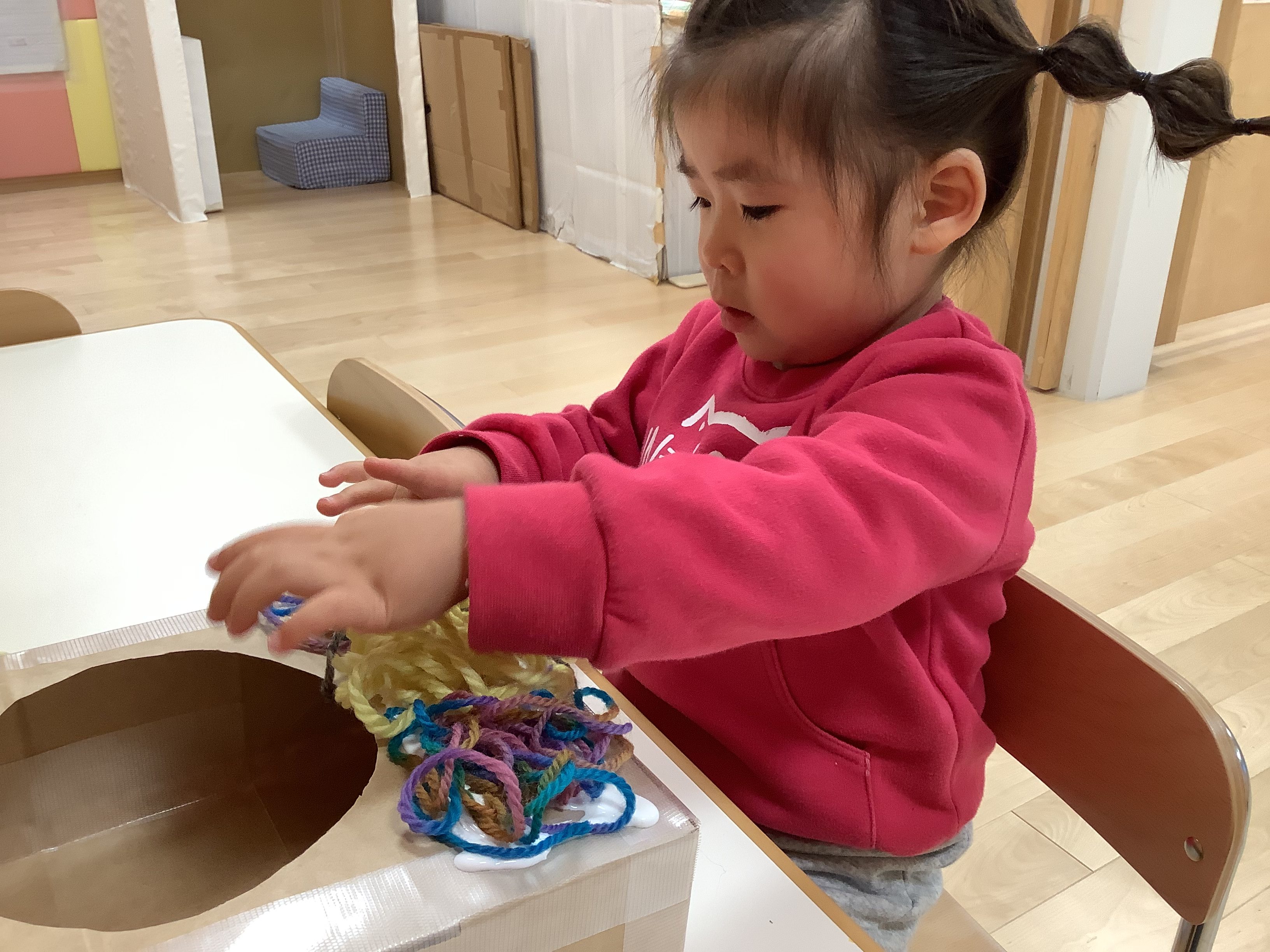〝長い毛糸をどんな風に貼ろうかなぁ?〟