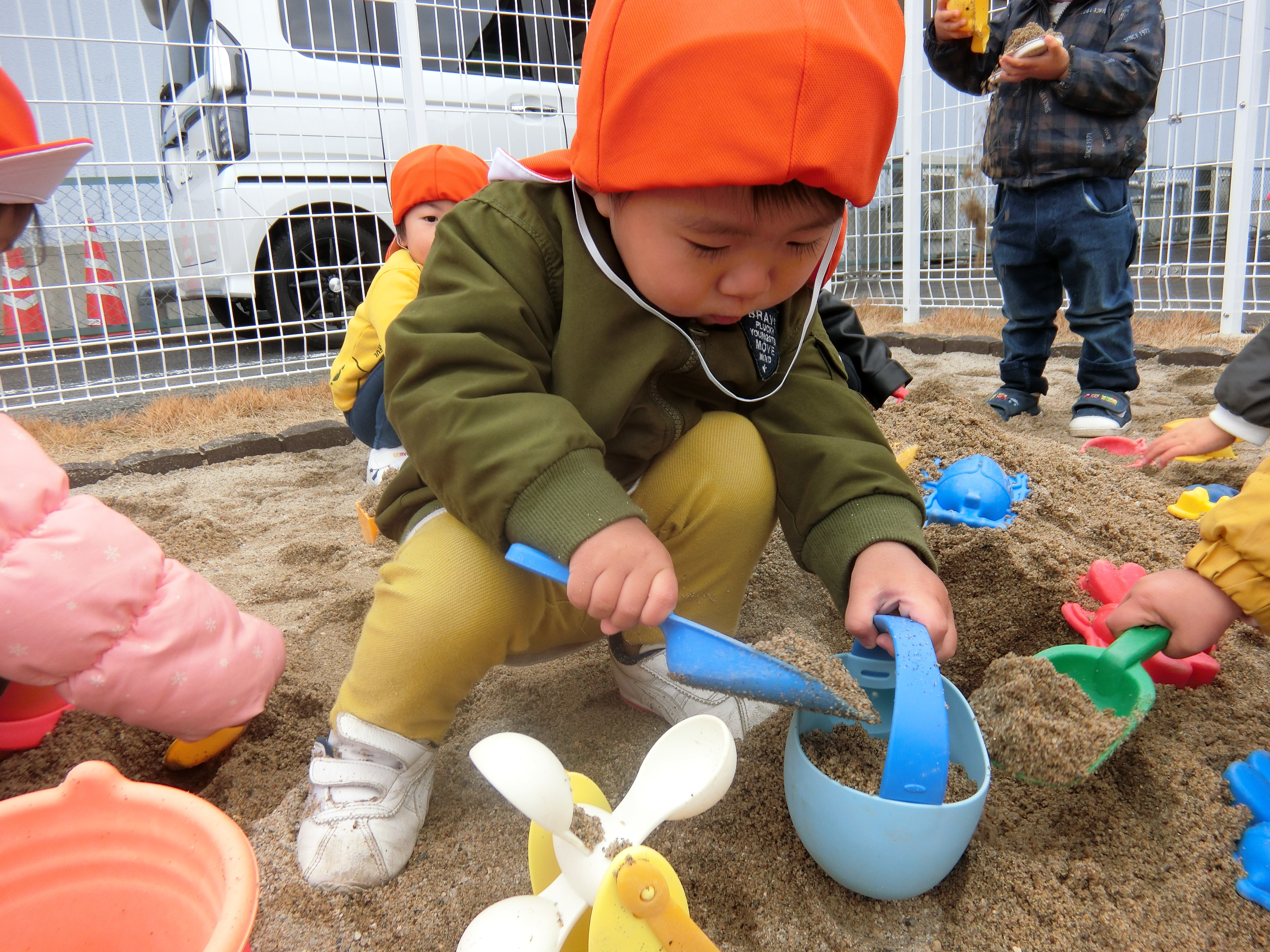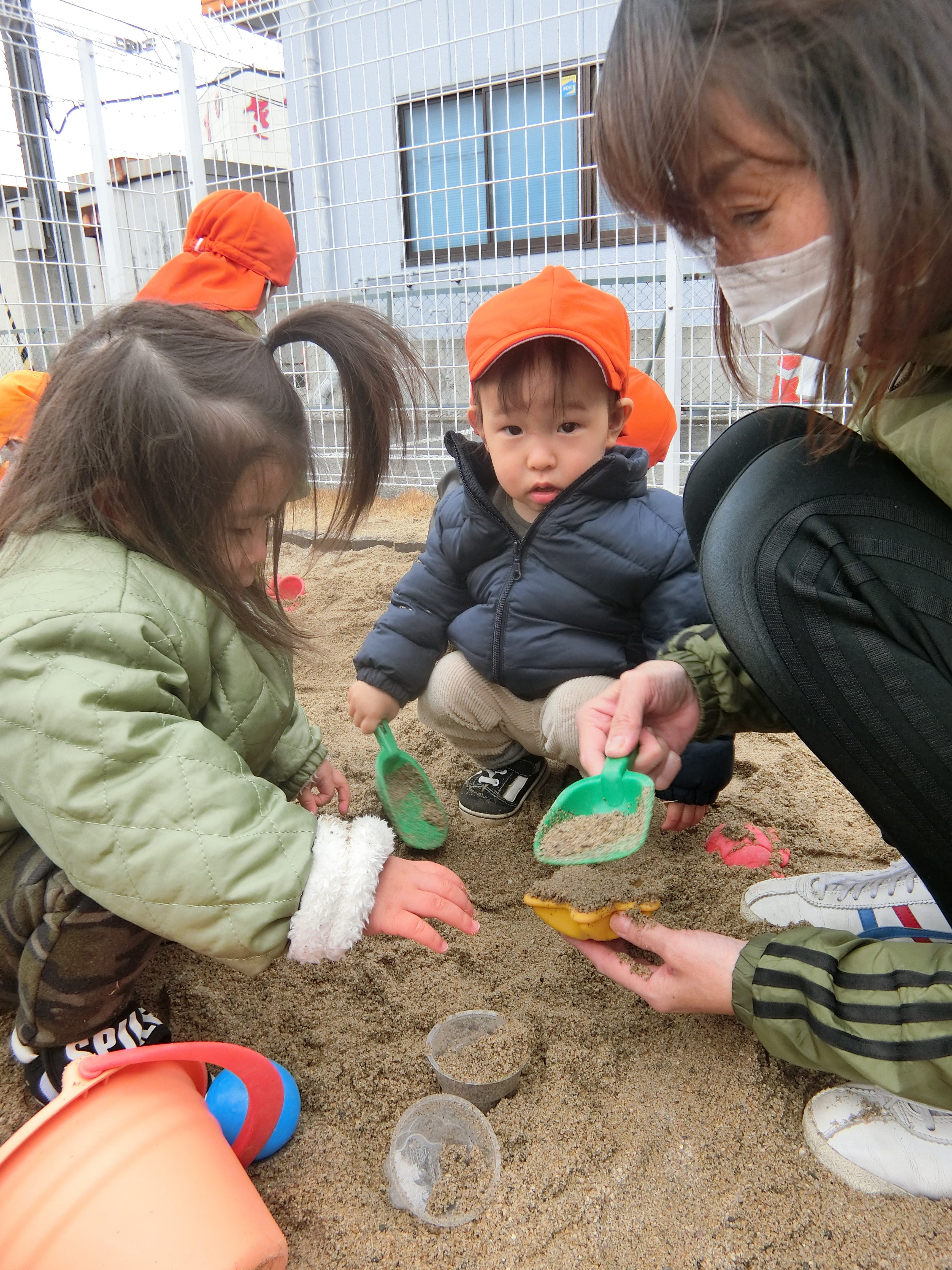 ちょっと高いところから砂を落とすとサラサラ落ちていって楽しいね(o^^o)