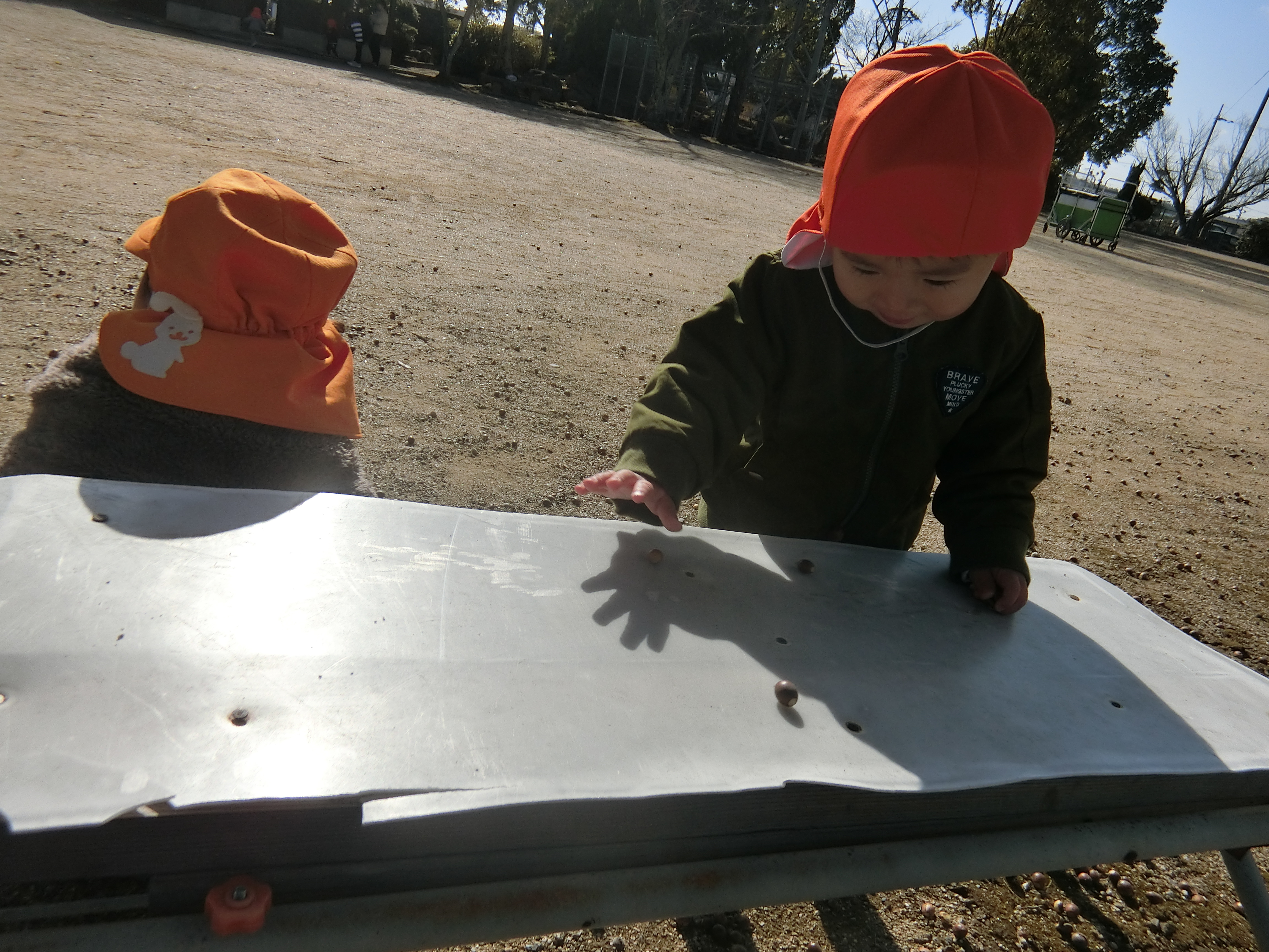 ベンチの上で〝コロコロ〟どんぐり転がしも楽しんだよ♬