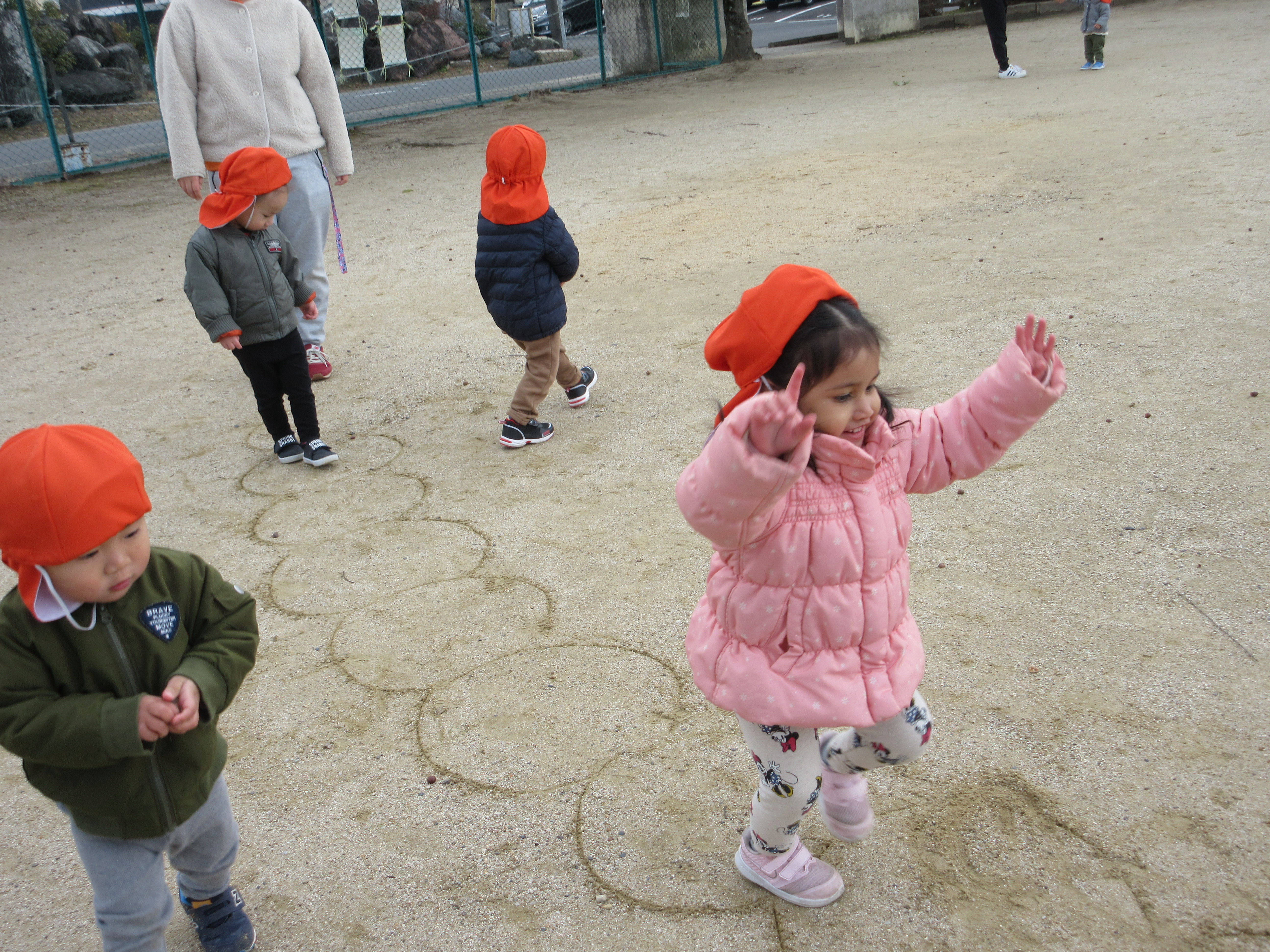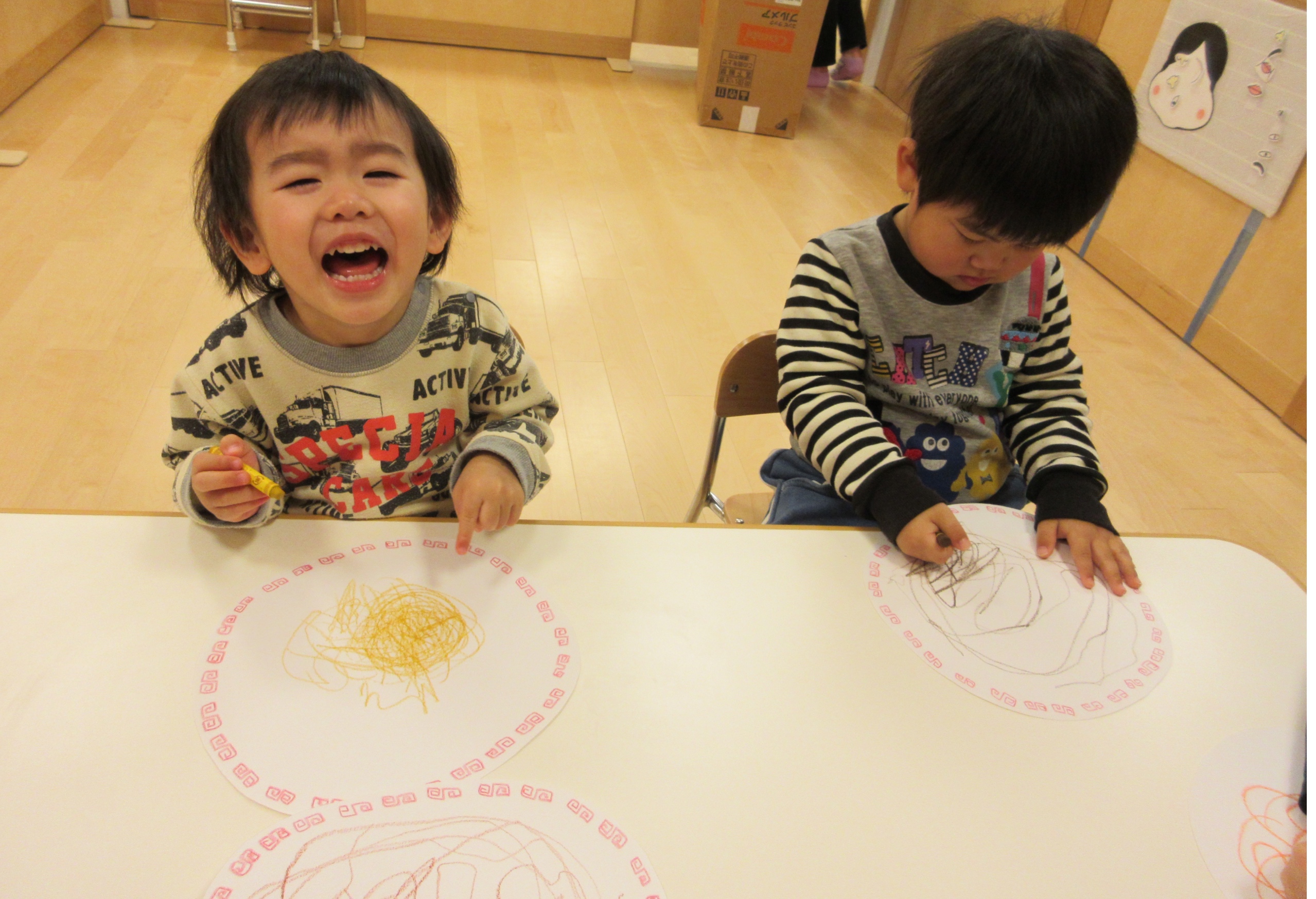 後ろのお友だちは丸の線をなぞっているのかな?✏️○