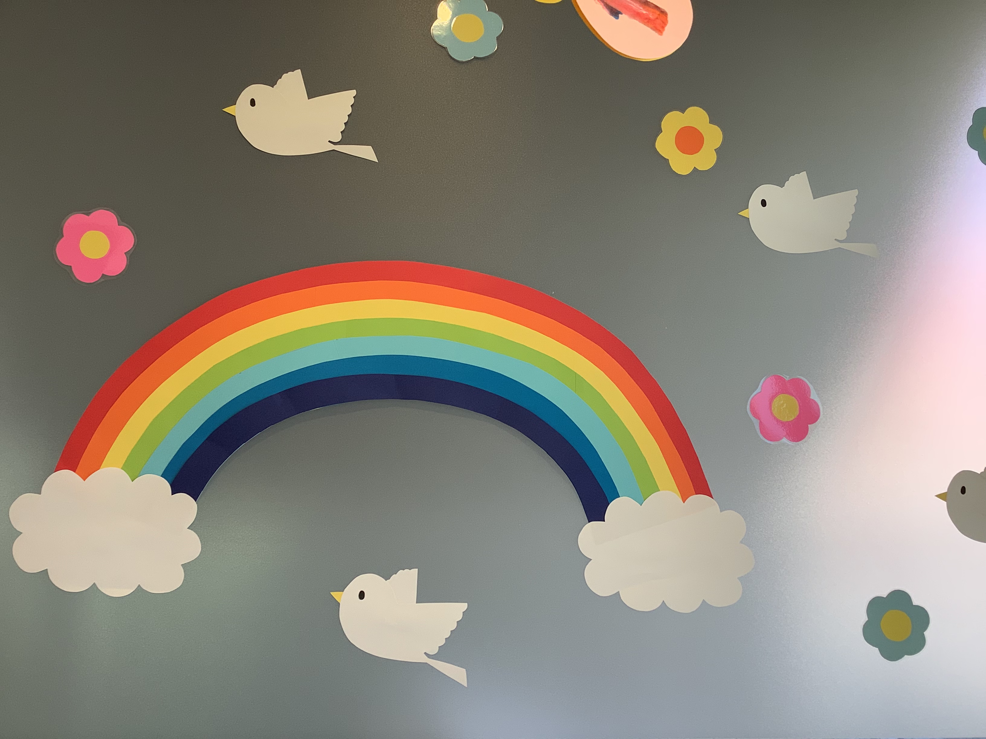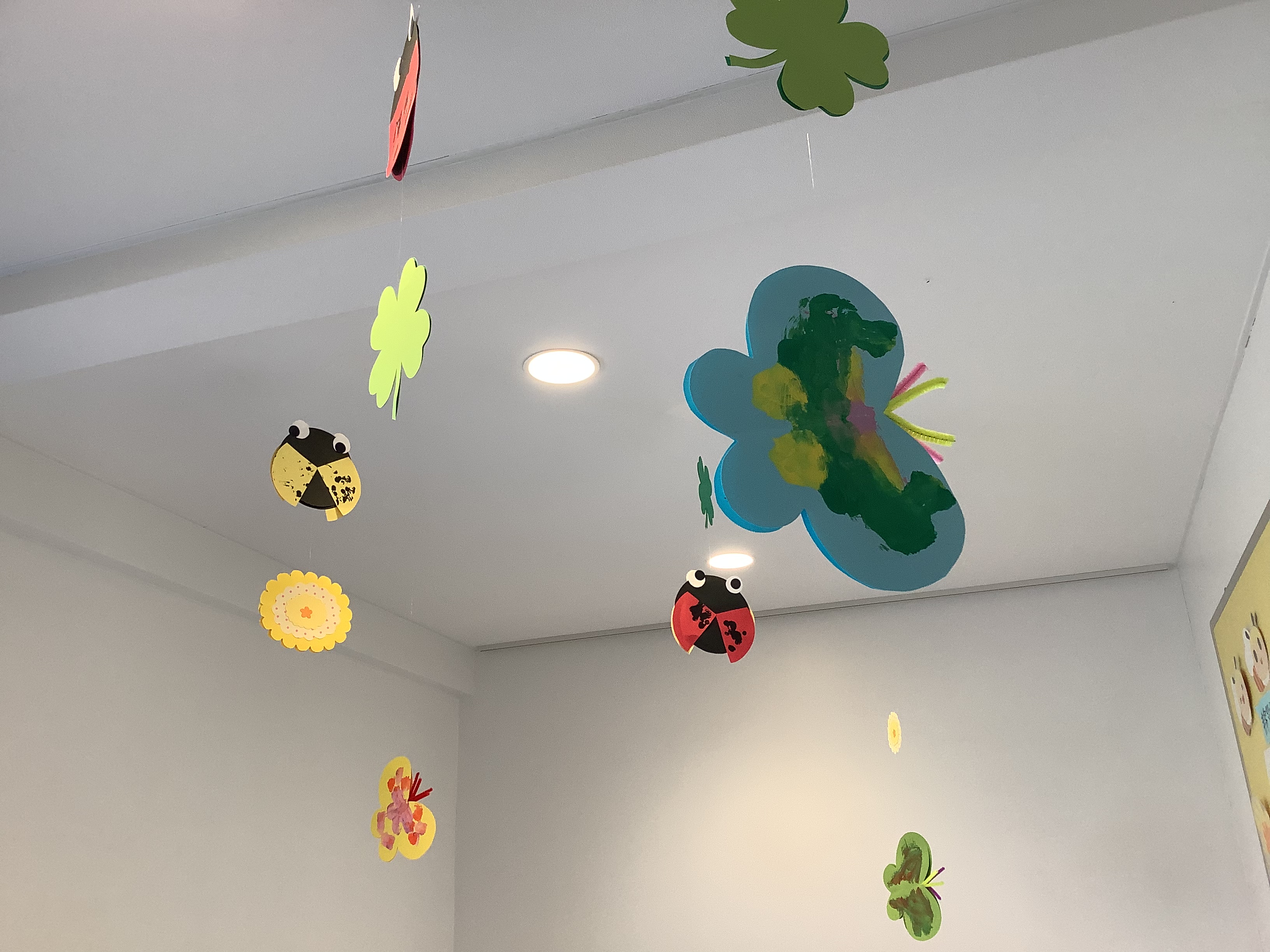 0・1歳児のお友だちが作った〝てんとう虫?〟と〝ちょうちょ?〟の飾りが玄関ホールで卒園児を出迎えてくれています♬