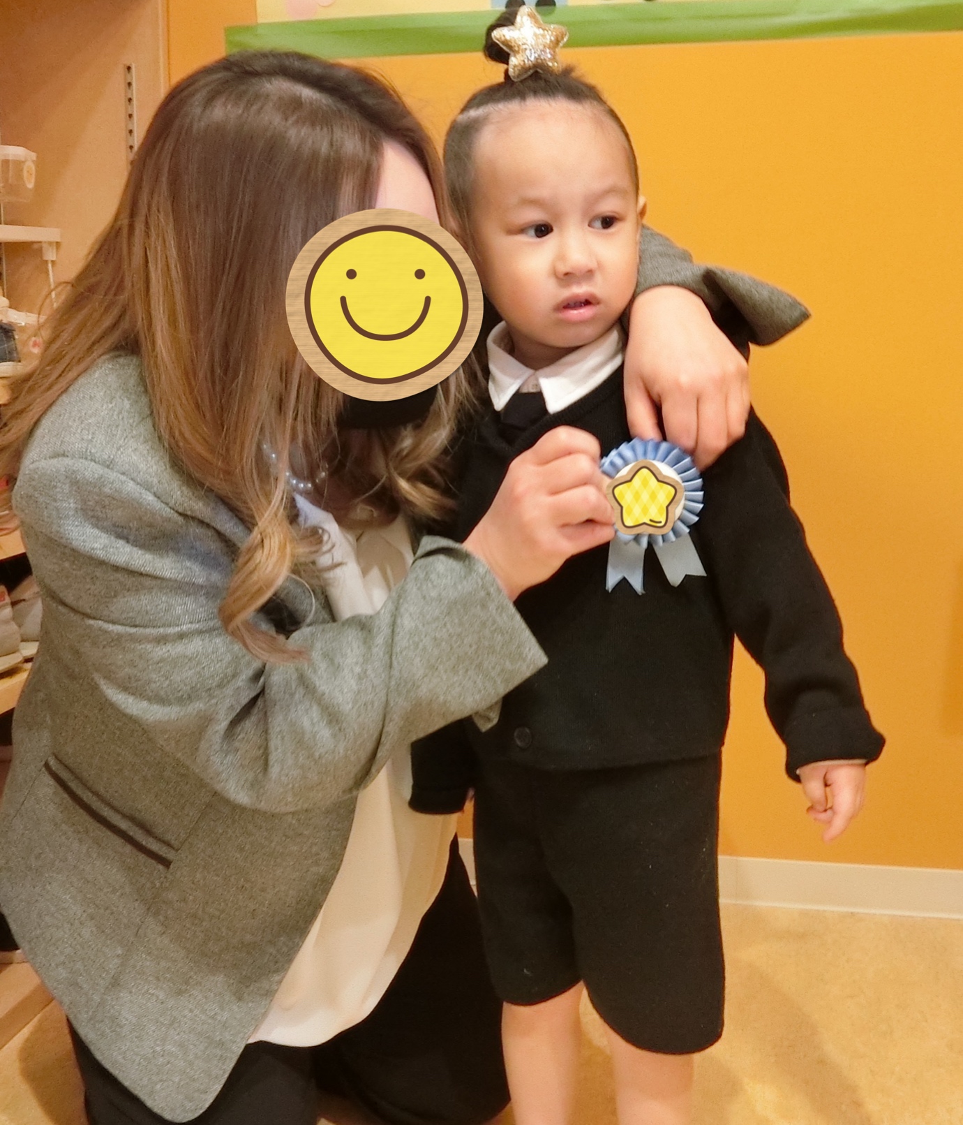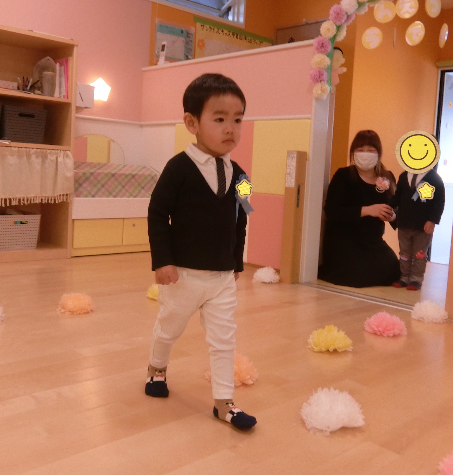 子どもたちの胸に、お家の人にコサージュをつけてもらいました✨