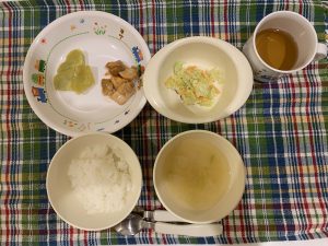 野菜のみではなく、コールスローサラダみたいにマヨネーズをからめたものだと少し食べやすくなりますね。今日は野菜をいっぱい食べている様子が見れました。