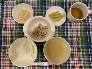 ③鍋にお湯を沸かし、①②をゆでる。※約3分