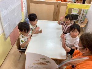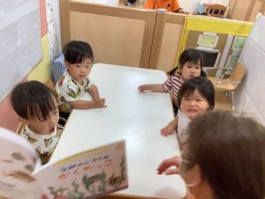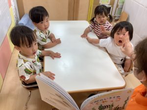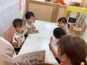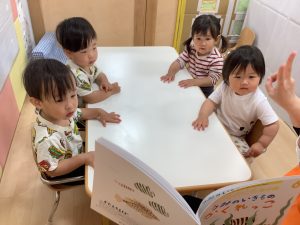 次回の絵本ブログは0歳児クラス2名と