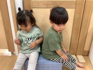仲良し半分こで座ろうね