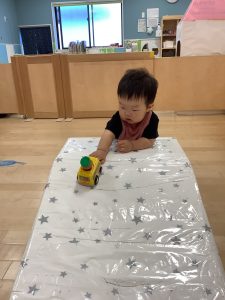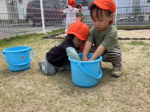 園庭では少しお水を触って遊んだよ
