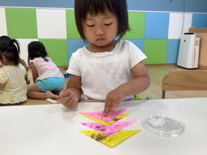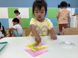 壁面製作で染め紙をしました