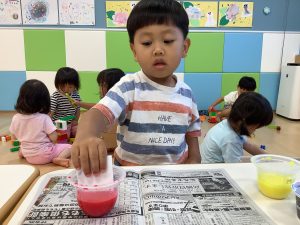 赤・青・黄色の3色の中から2色を子どもたちに選んでもらいました