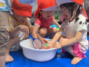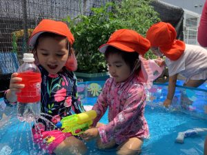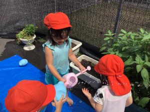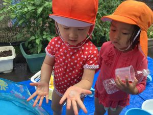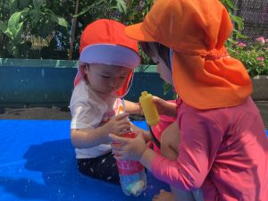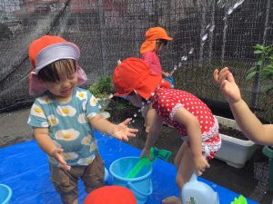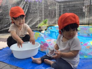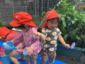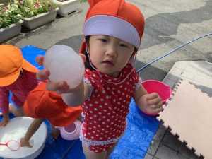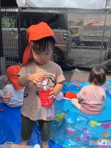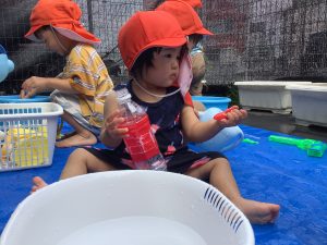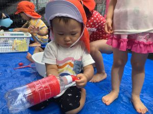 先週は雨降りが多くなかなか水遊びができなかったので、今週は水遊びを楽しみました![]()